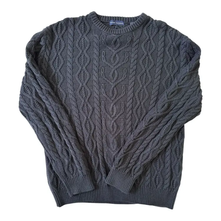 Men’s Blue Cable Knit Sweater, Size Extra Large, 100% Cotton