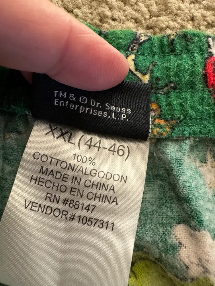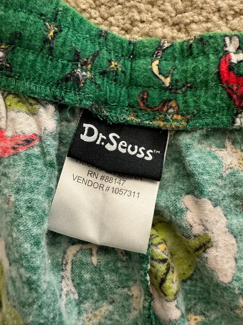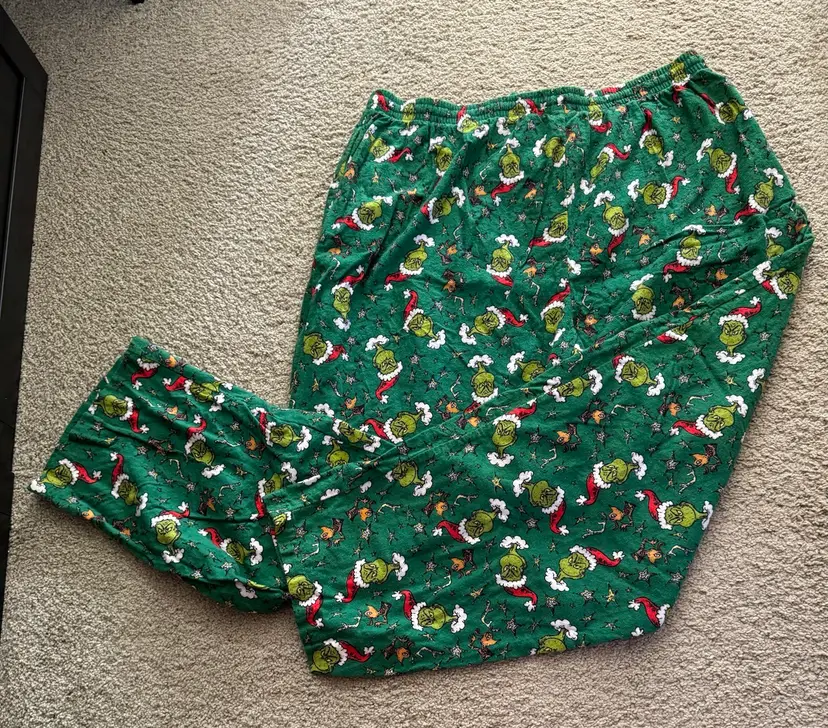 Men’s Dr. Seuss Grinch fleece lounge pants SZ 44-46 Length 42” Drawstring In good condition 100% cotton