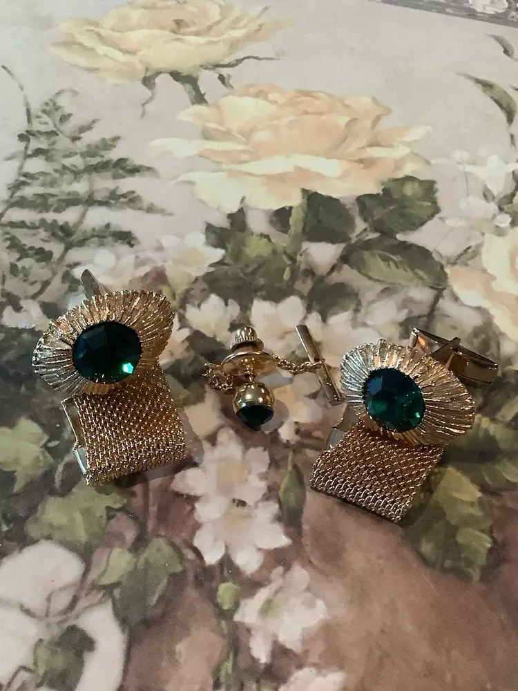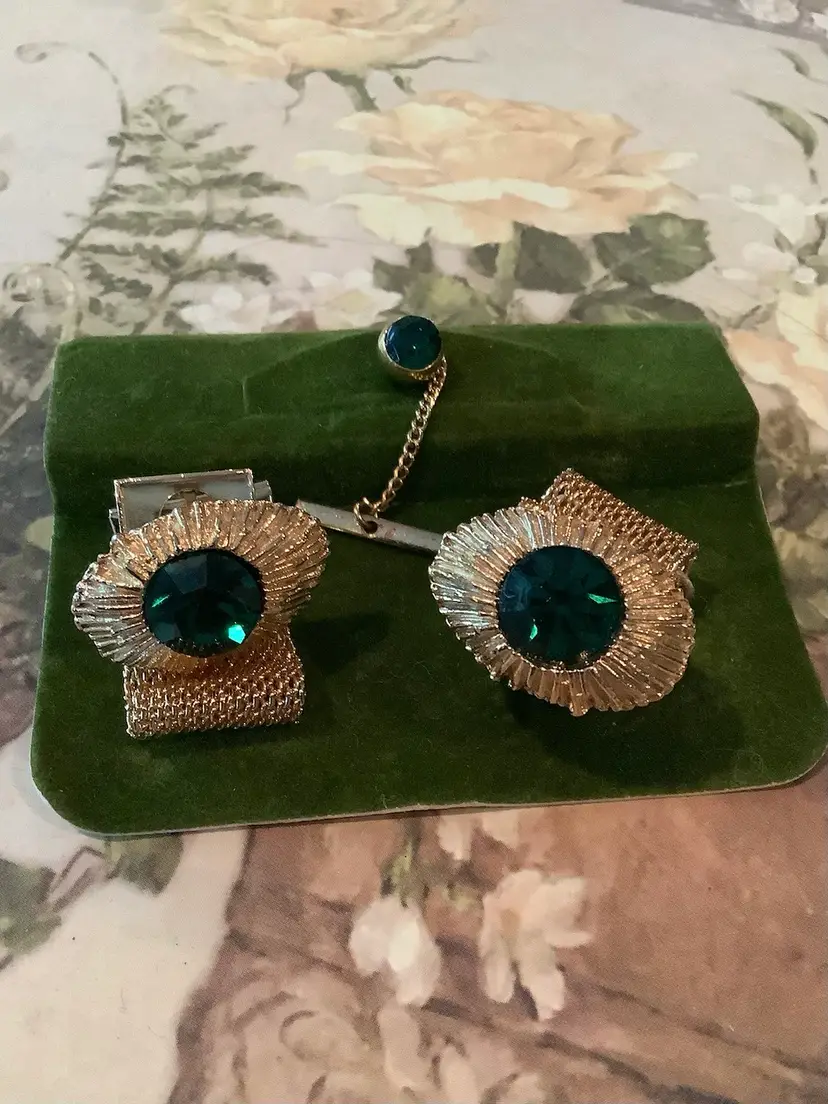 This exquisite jewelry set features a sending combination of gold and green perfect for adding a touch of elegance to any outfit, intricate design and vibrant colors. Make it a standup piece.. EUC