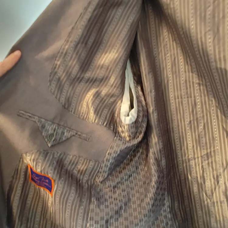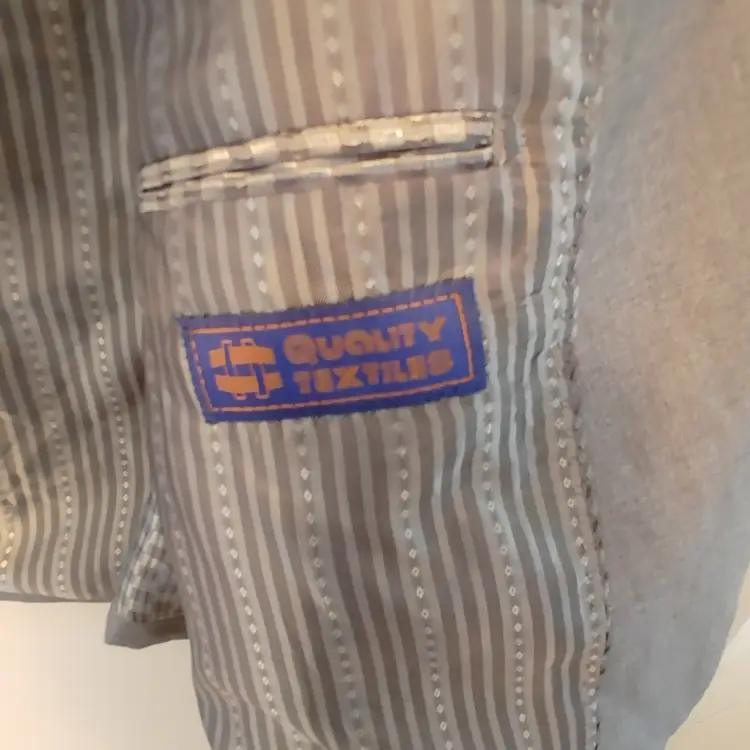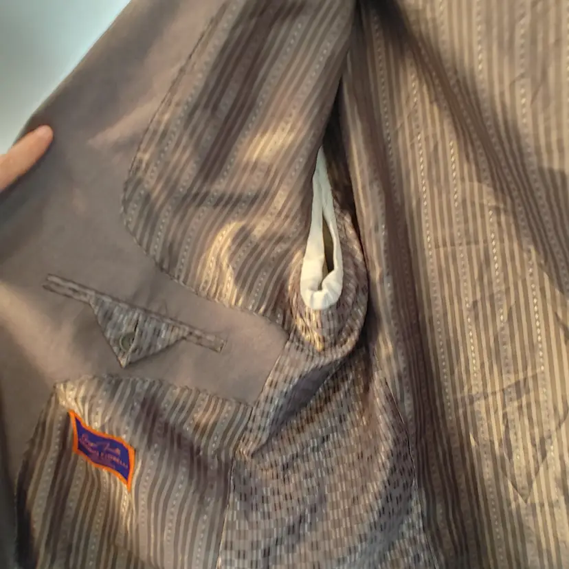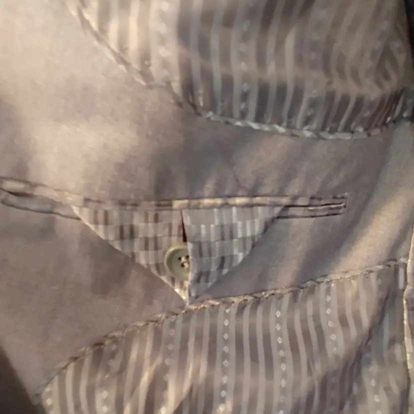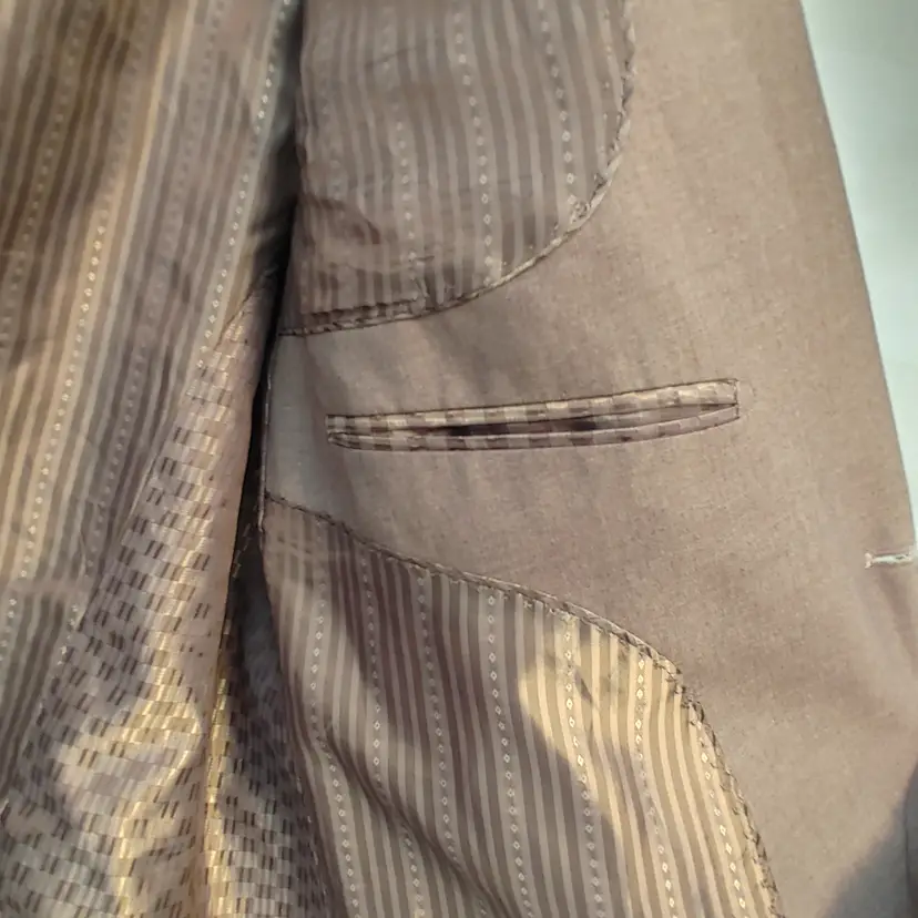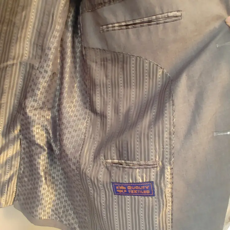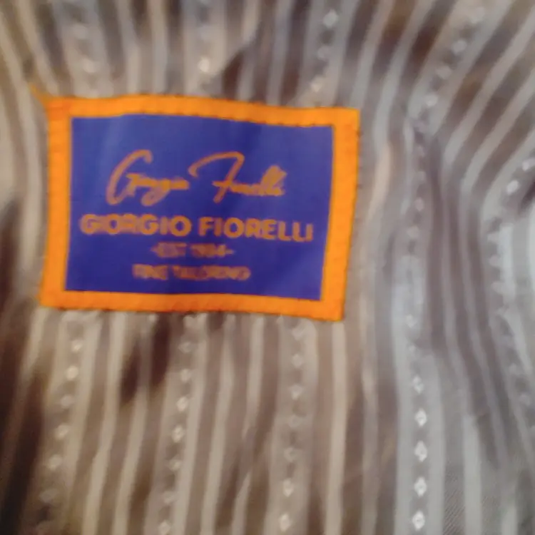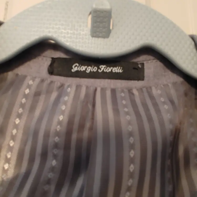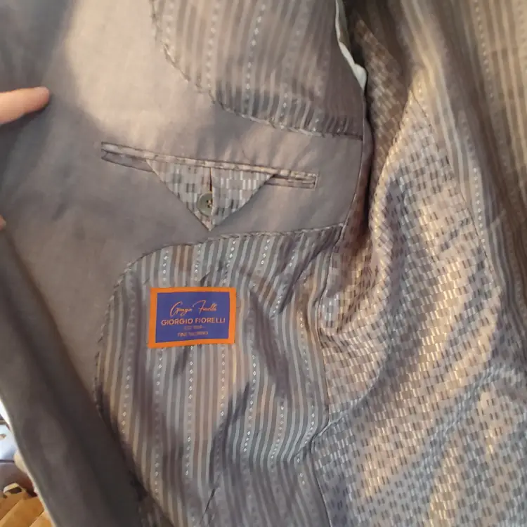 Men's Jacket- Brand: Giorgio Fiorelli. Size 44. Grey suit jacket with hand stitching. Style G45001-1. 65% polyester, 35% viscose. No callouts.