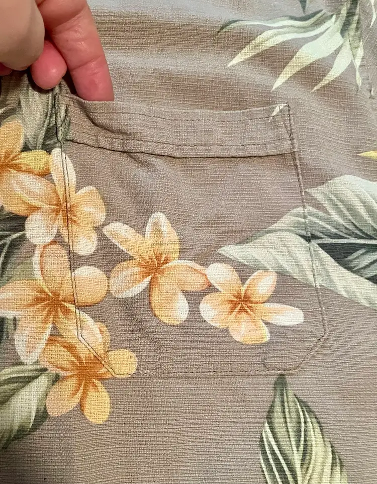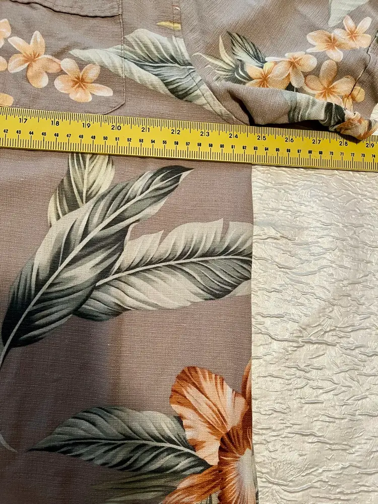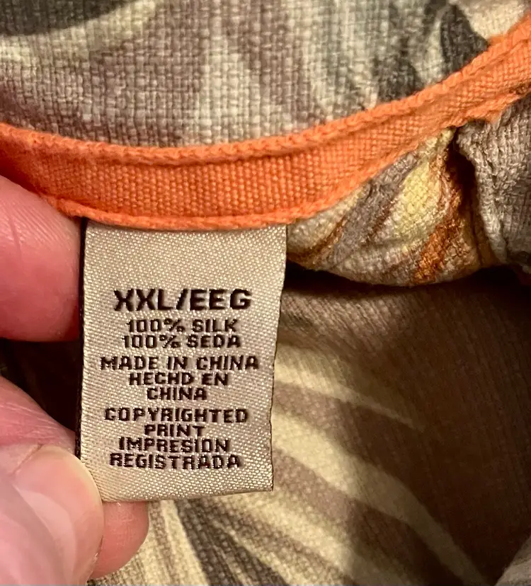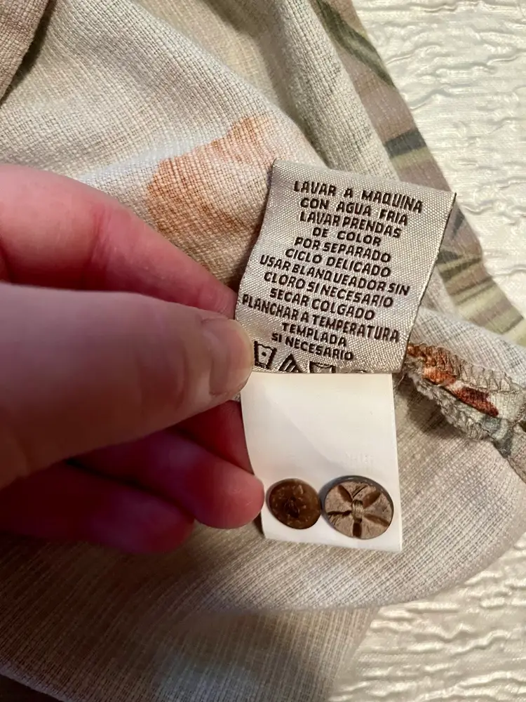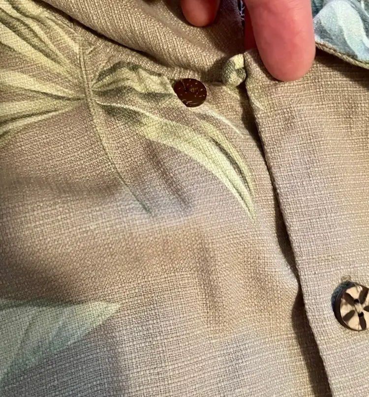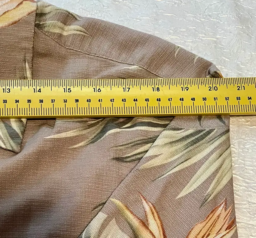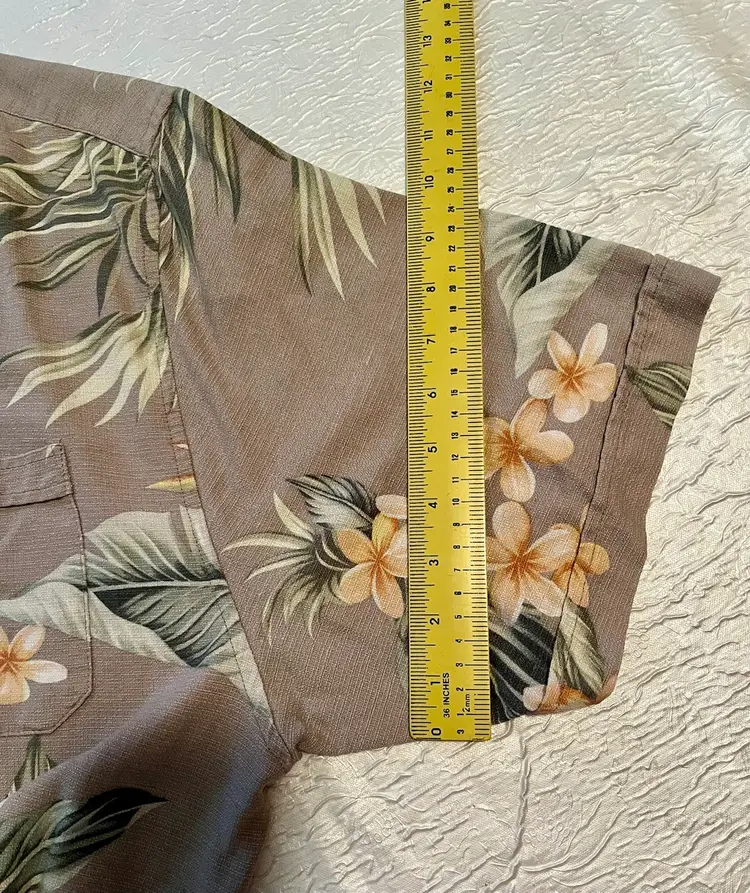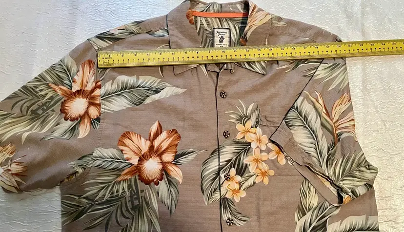 This gently pre-owned Jamaica Jaxx shirt with a spread collared neckline and short sleeves, it's perfect for many types of occasion, whether you're traveling, on a cruise, at work, or just hanging out. Made of high-quality silk, this shirt is both comfortable and travel worthy, and comes in a beautiful beige multi-color tropical/Hawaiian pattern.