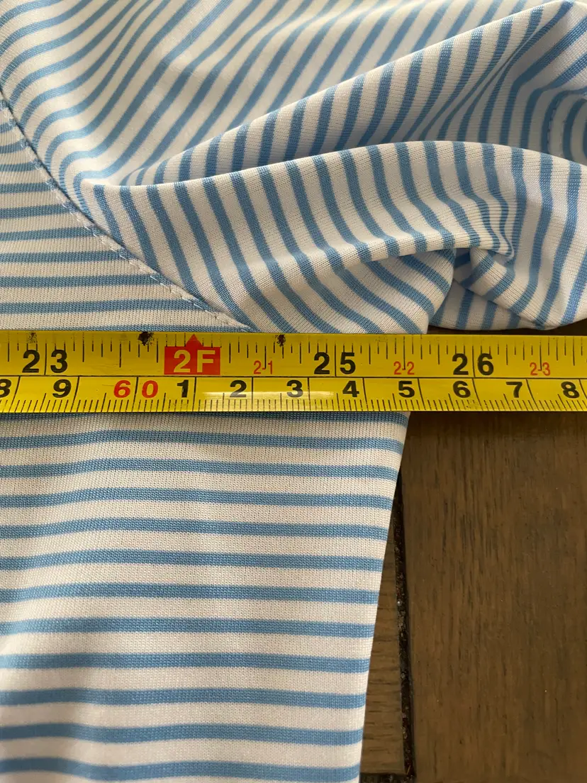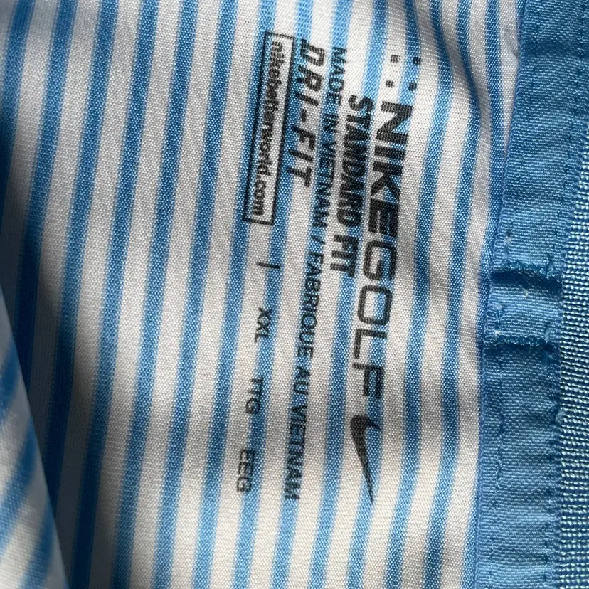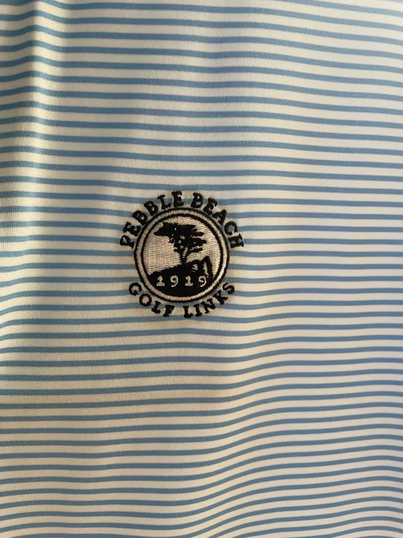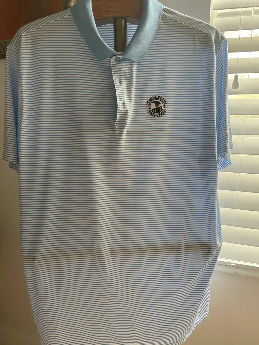 Mens Golf Shirt - Pebble Beach Golf Links Logo Bought in Pebble Beach! Light blue and White Striped body, solid blue collar XXL - Standard Fit Nike Dri-Fit brand Pit to Pit - 25 1/2" (see photo) Smoke and Pet Free environment Fast shipping!