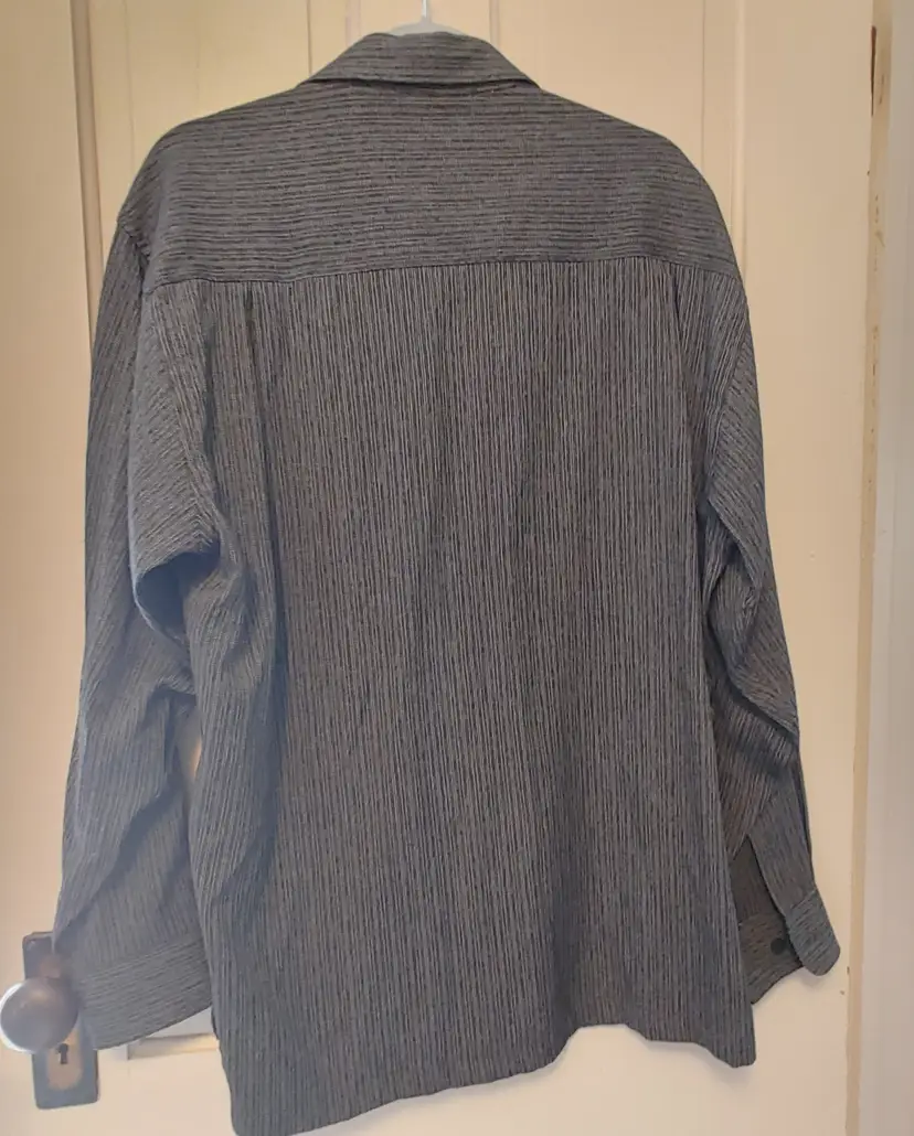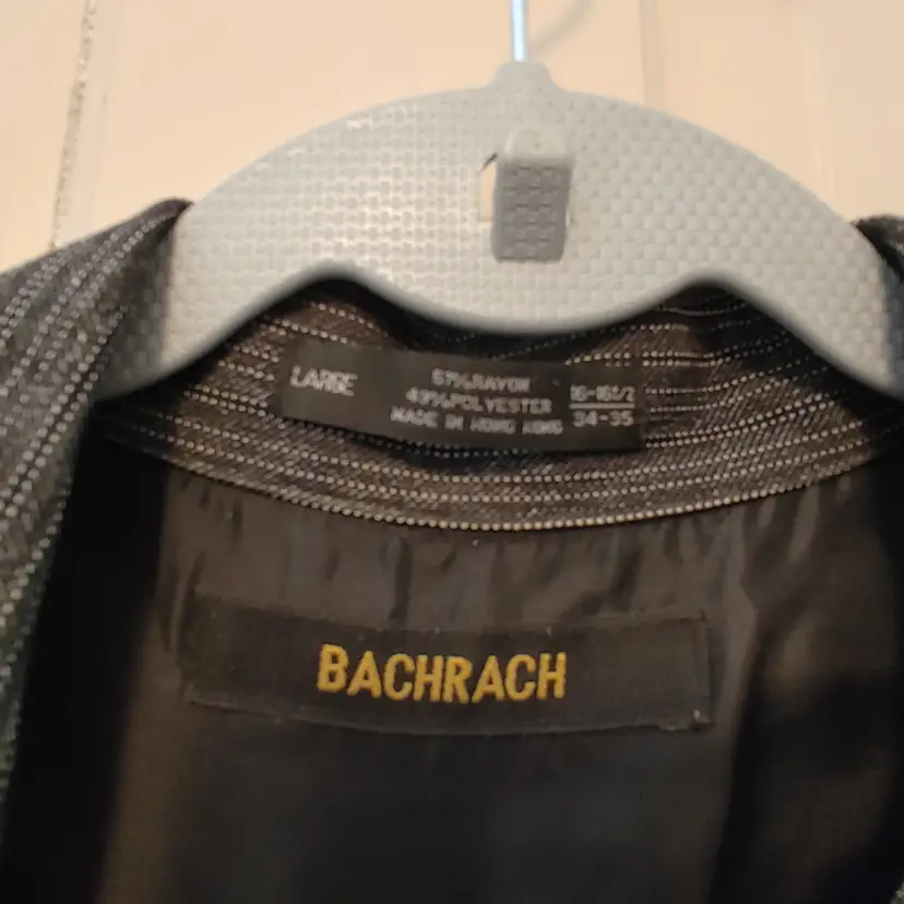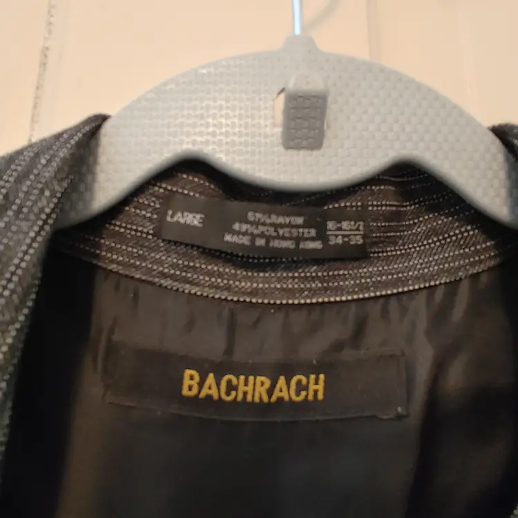 Men's Top- Brand: Bachrach. Size Large (16-16 1/2, 34-35). Black button down shirt with front pockets.. 51% rayon, 49% polyester. No callouts.