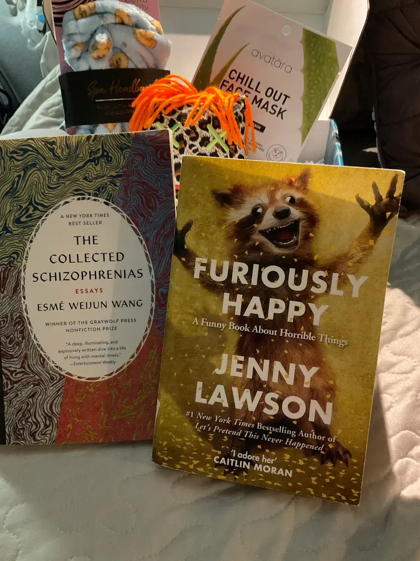 This unique gift box celebrates neurodiversity and includes wonderful works by essayists Jenny Lawson and Esme Weijun Wong. Gift items include spa headband and facial treatment, Zoloft mug, and dammit doll plush. Our gift boxes are themed to match the reading material, and include previously enjoyed books, new, thrifted, or upcycled items for your recipient to enjoy, and enhance the reading experience.