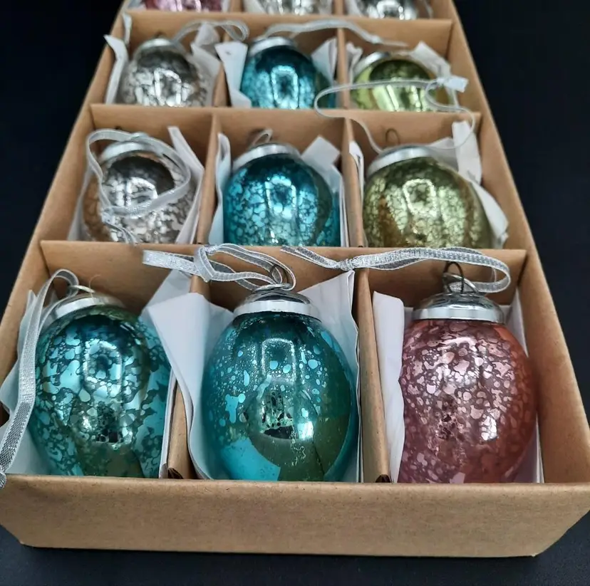 Beautiful ornaments are approximately 2 1/2" x 1 1/2", excellent condition