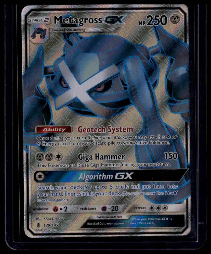 Strengthen your Pokémon TCG lineup with Metagross GX from the Sun & Moon Guardians Rising set! Featuring the Geotech System ability and powerful Giga Hammer attack, this card is a strategic powerhouse for any player. Perfect for both collectors and competitors.