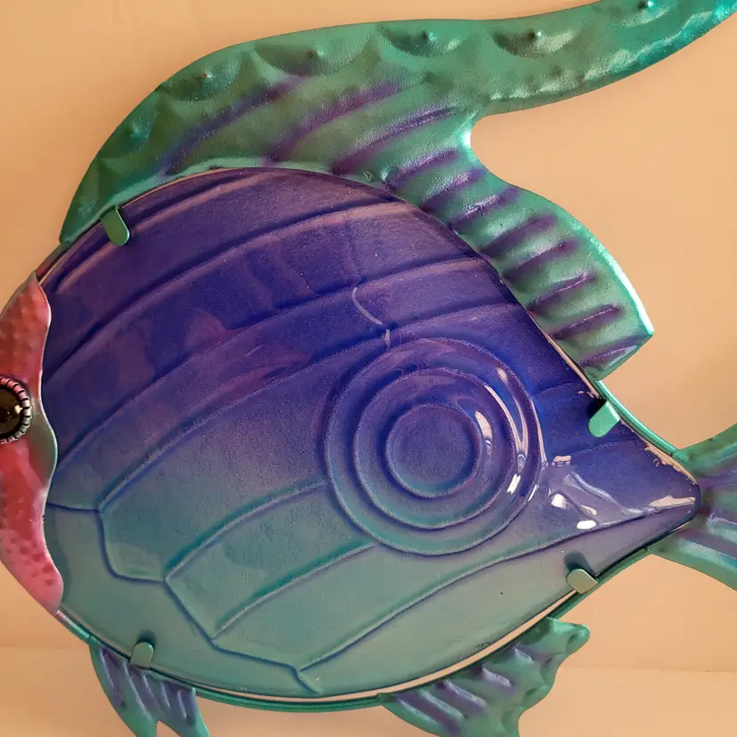 ~ Dolphin - 14.5" wide x 8" high (some scratches on tail due to how it was stored) ~ Fish - 13" wide x 9.5" high ~ Crab - 11.5" wide x 9.5" high