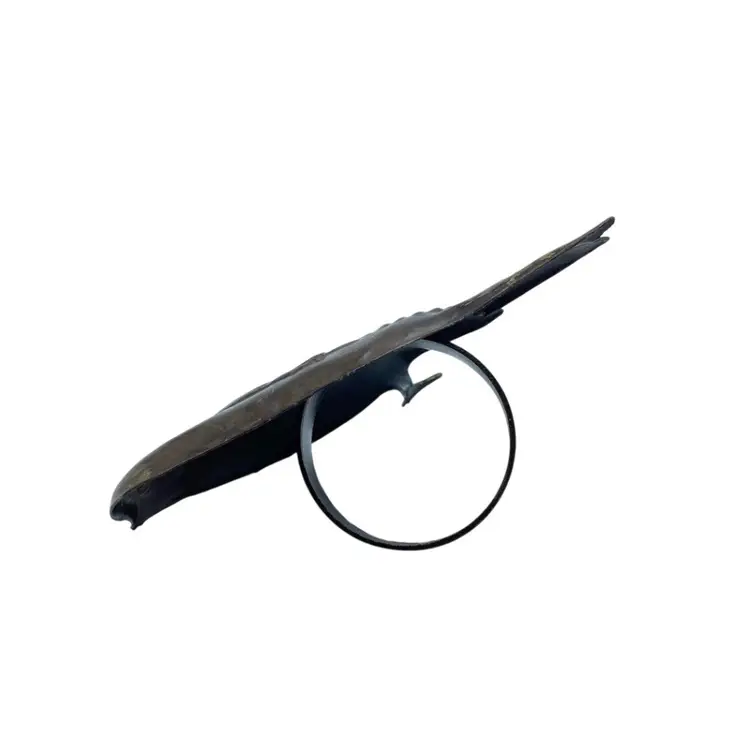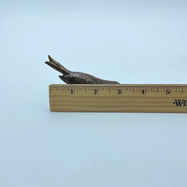 This is a set of 4 copper/brass toned metal bird shaped napkin rings. They each measure approximately 3.75" wide x 3" long. No flaws.
