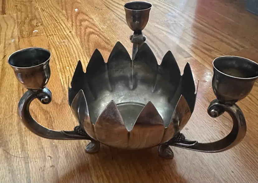 Metal Flower Candle Holder No bends or breaks Sharp flower points Cleaned of any ash Slight tarnish
