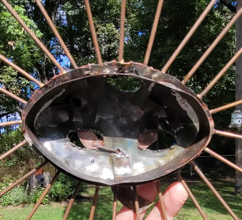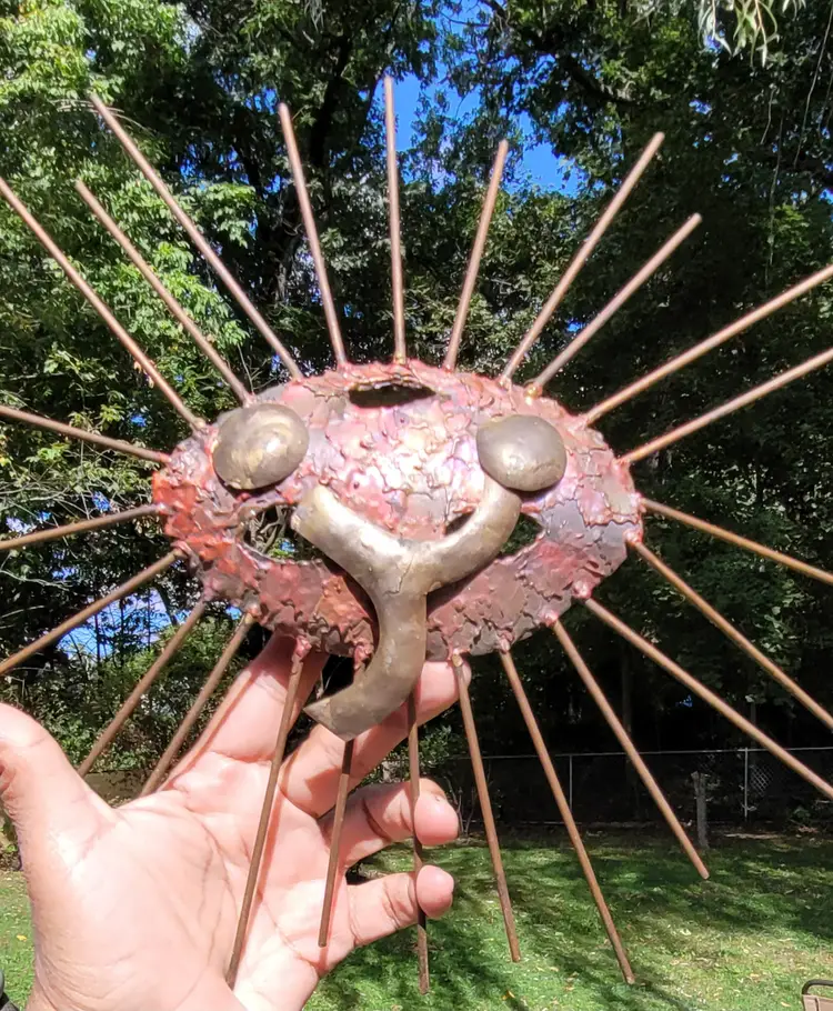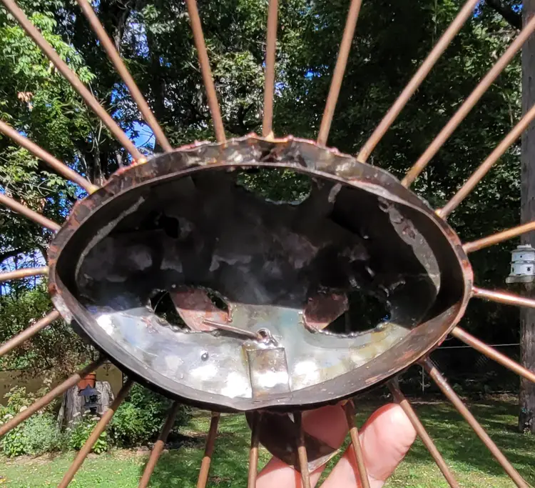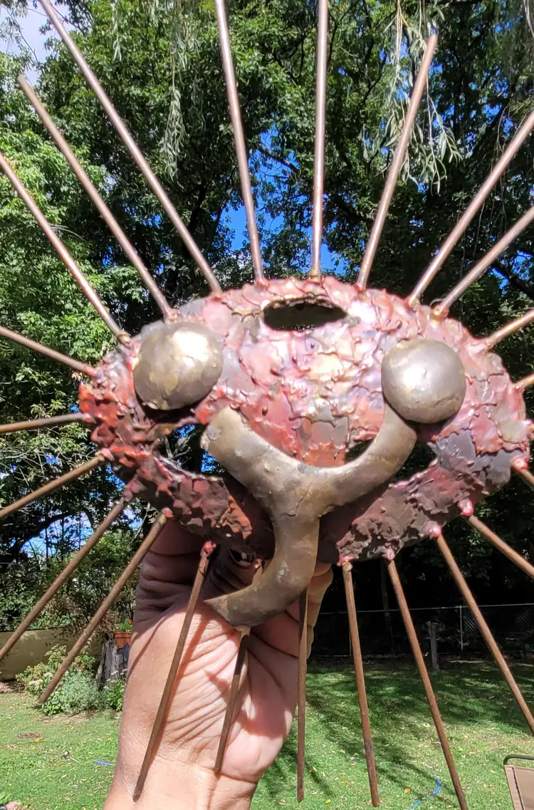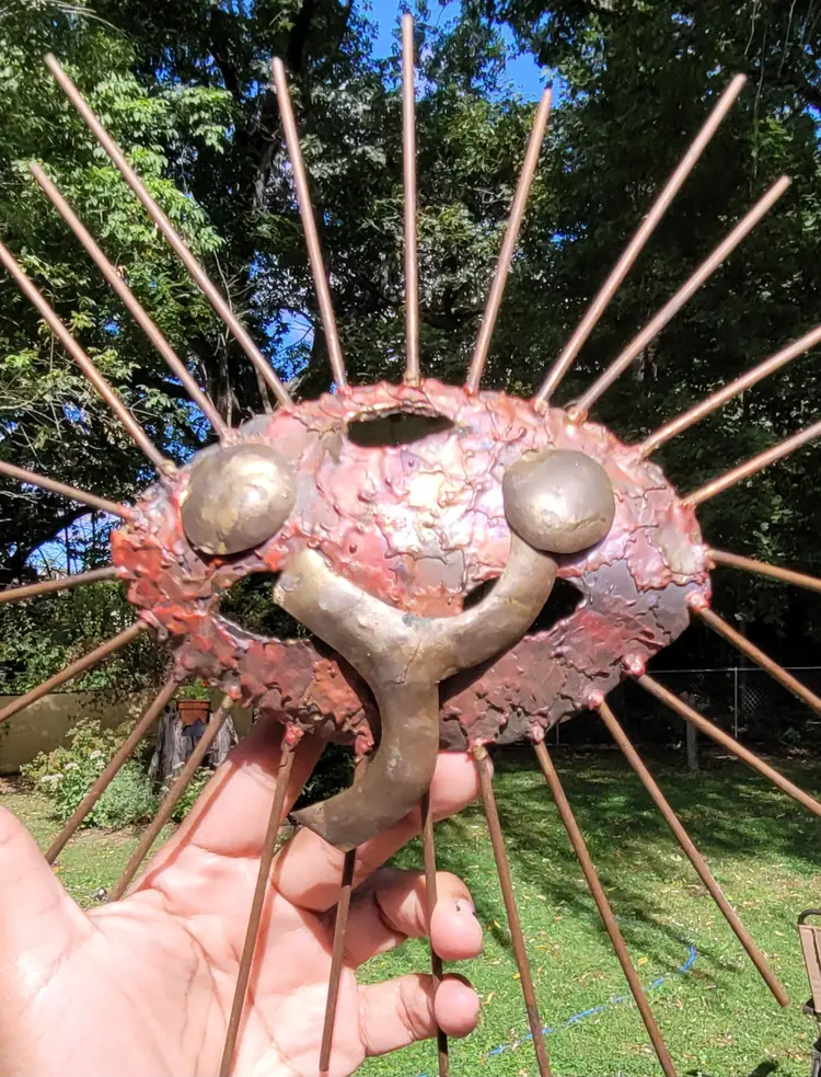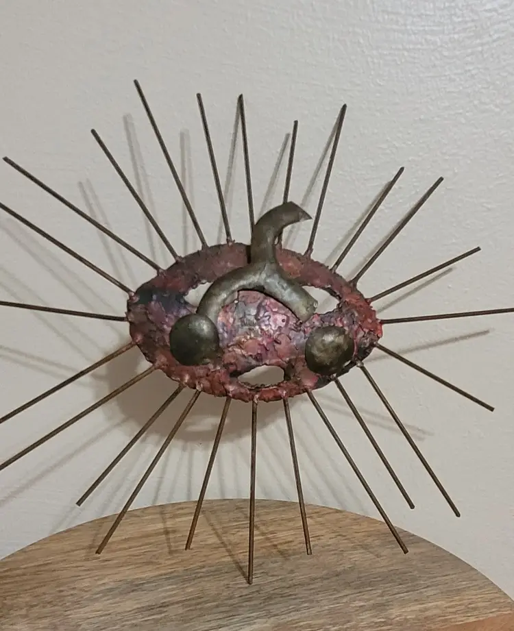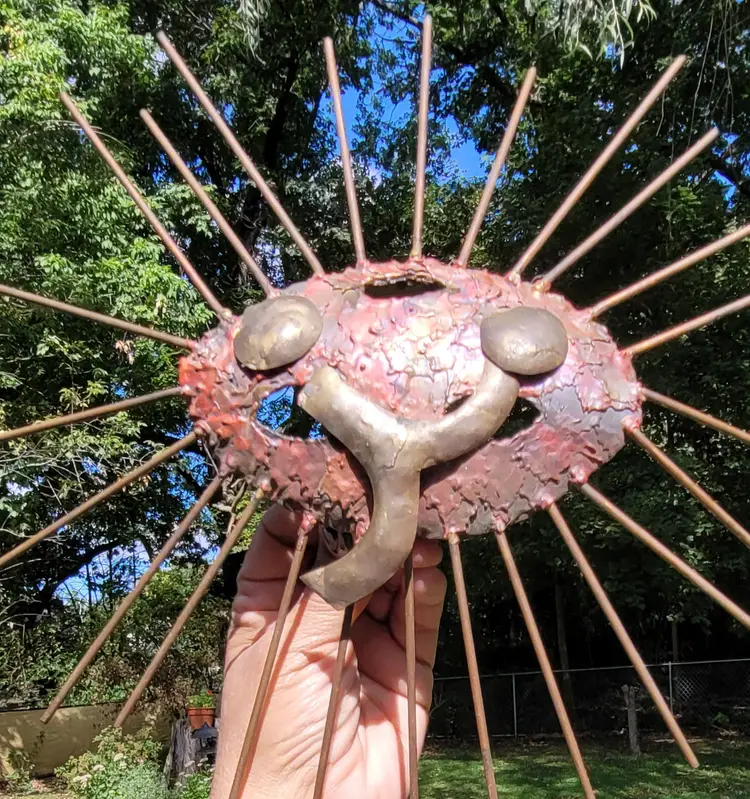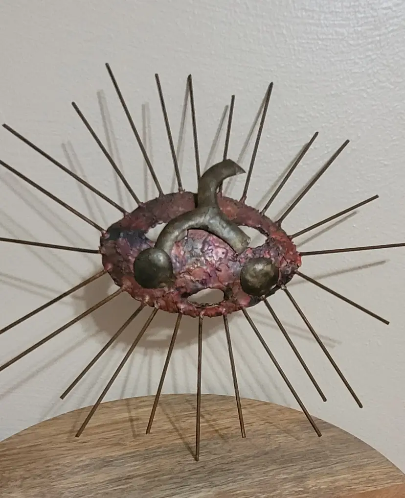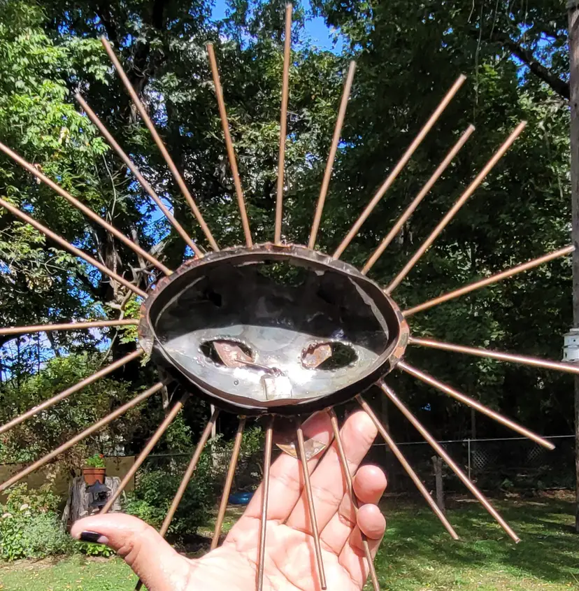 Unique metal artwork. Lightweight metal mask with sun rays design.