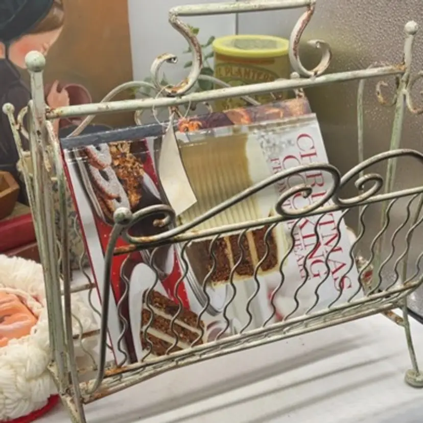 Metal Rusty Crusty Magazine Rack Chippy Paint