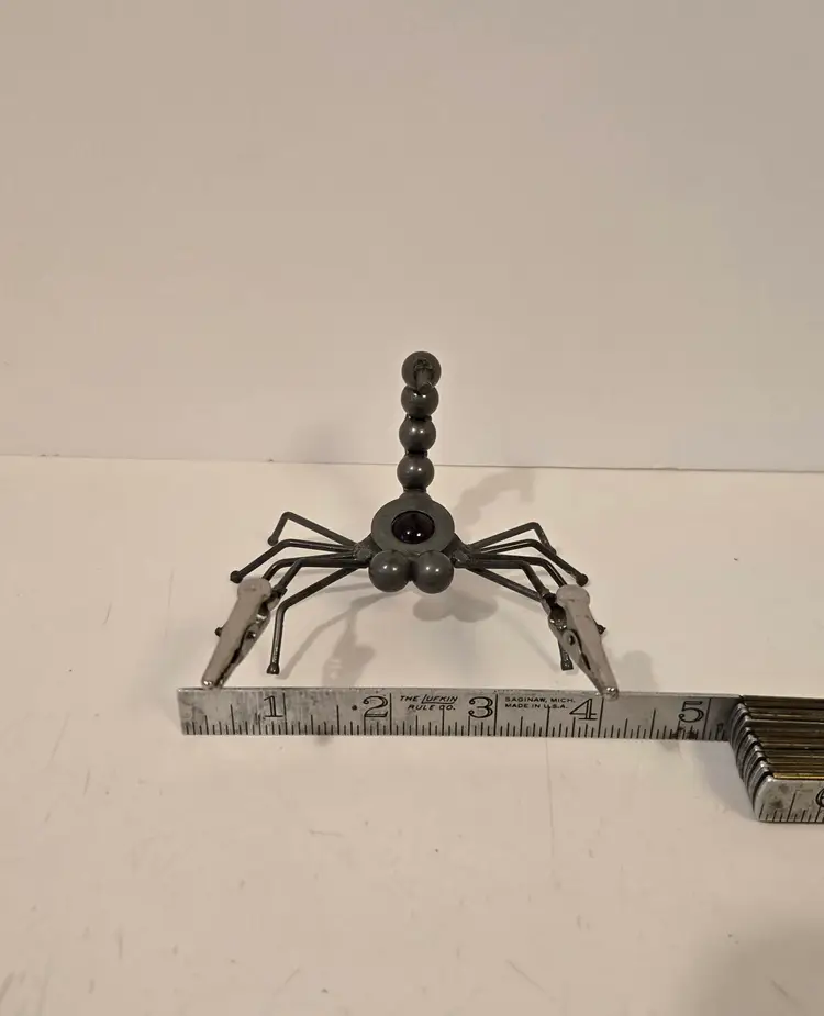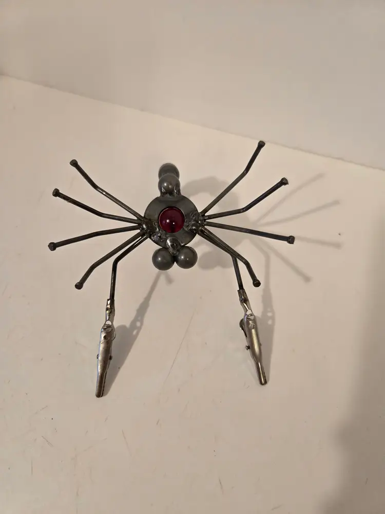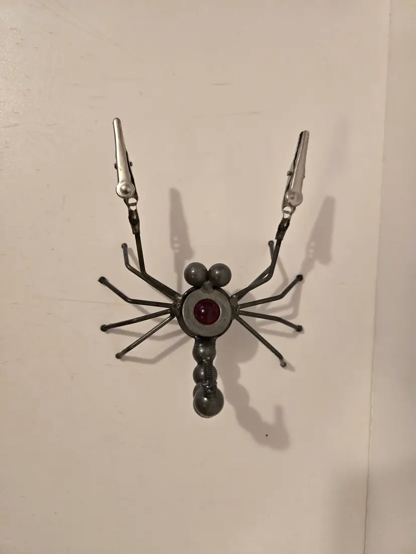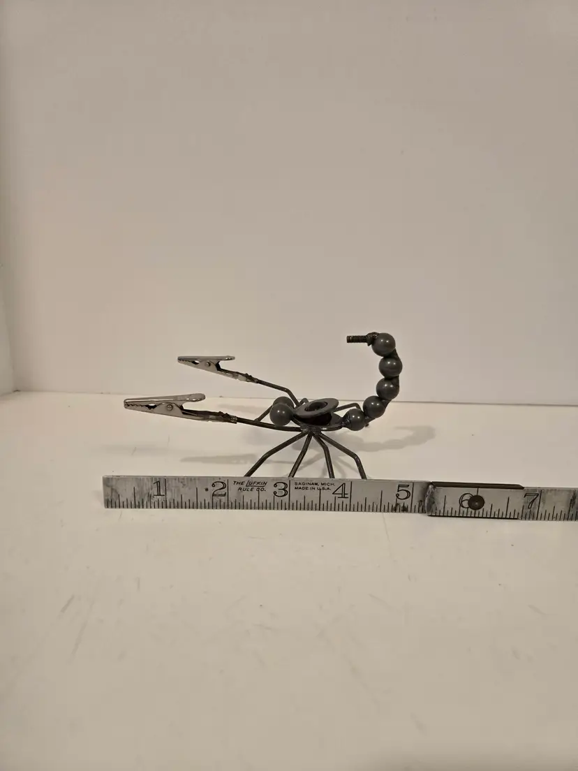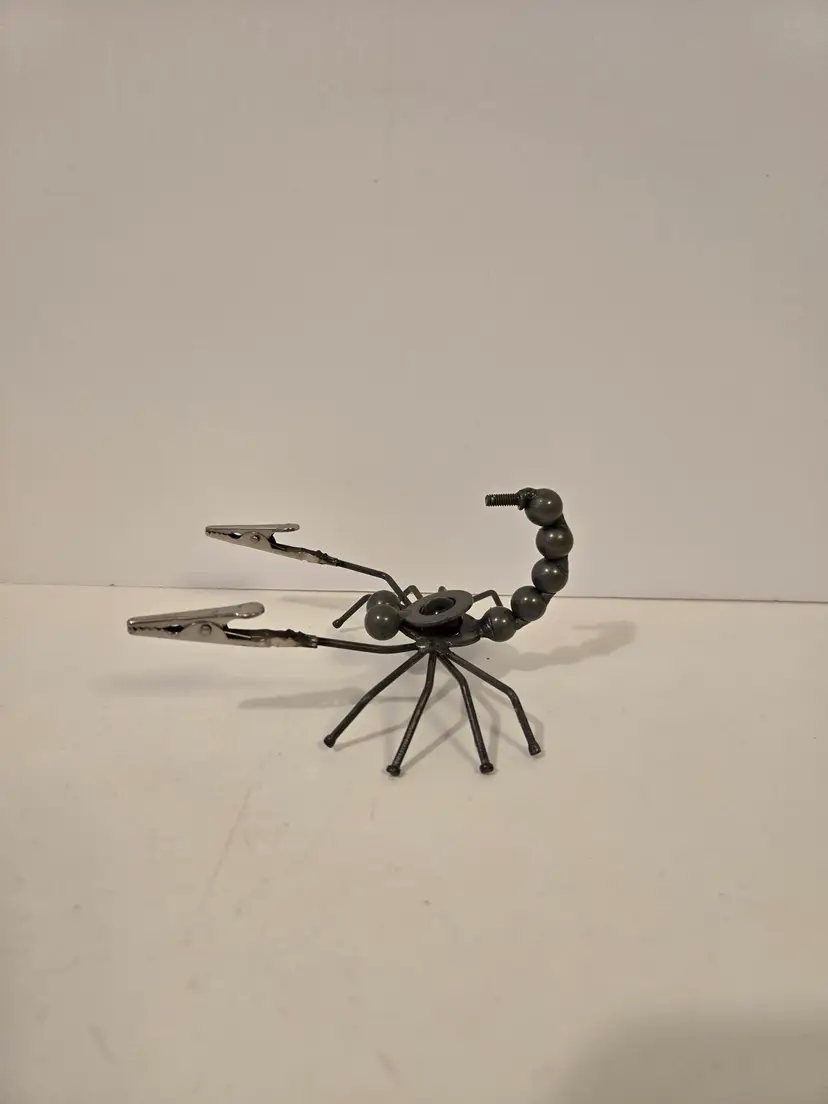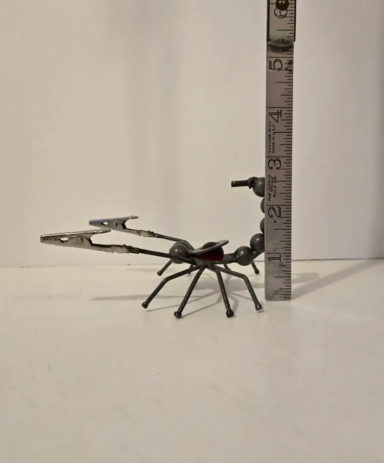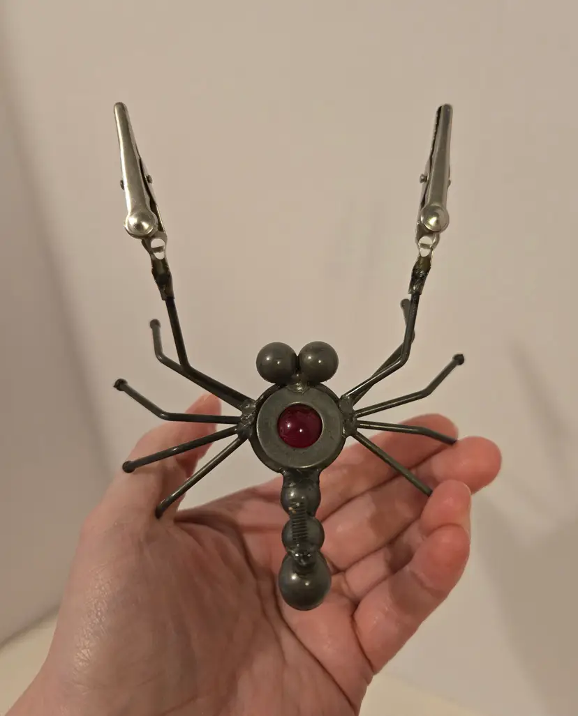 This fun little guy measures approximately 5.4×4×2.6 inches. It's "pinchers" can be used to hold photos or messages.
