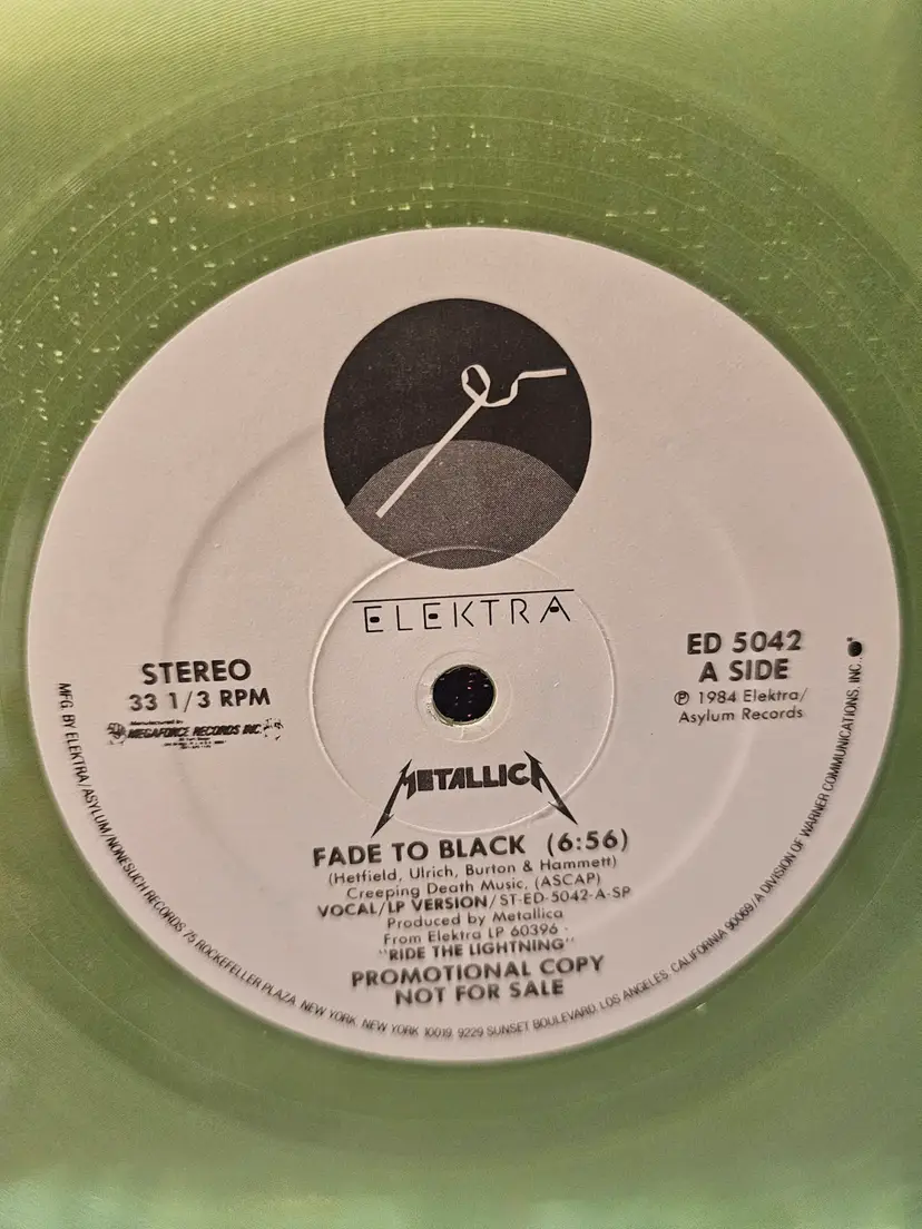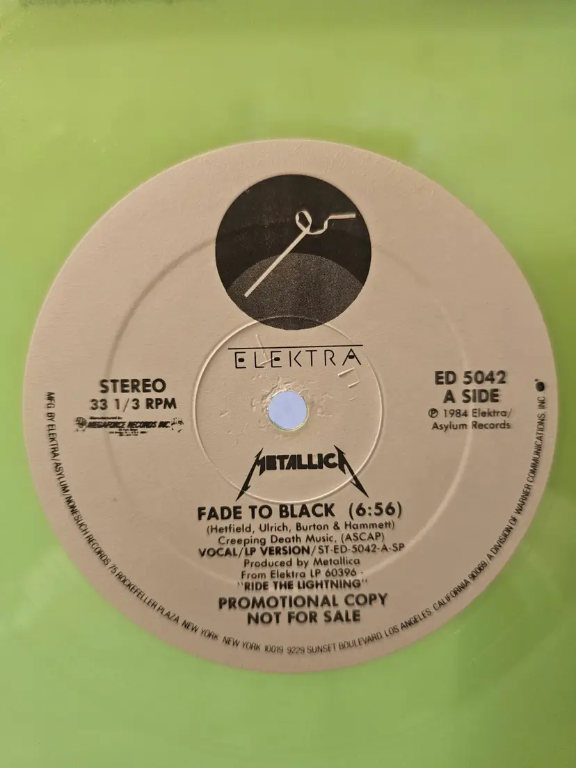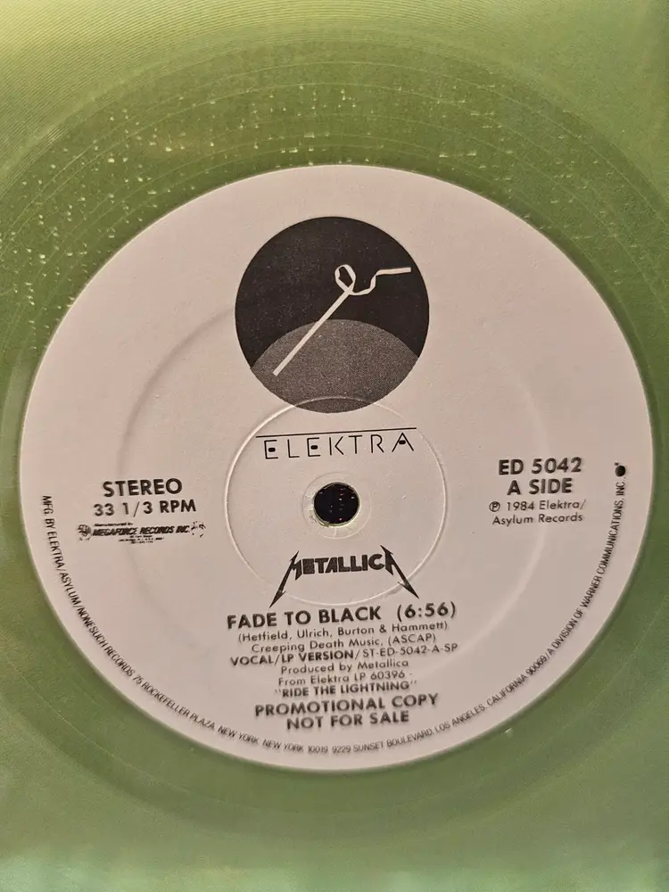 Artist: Metallica Title: Fade To Black Label: Elektra / Asylum Records Catalog #: ED 5042 Year: 1984 Format: 12", 33 1/3 RPM, Stereo Track Length: 6:56