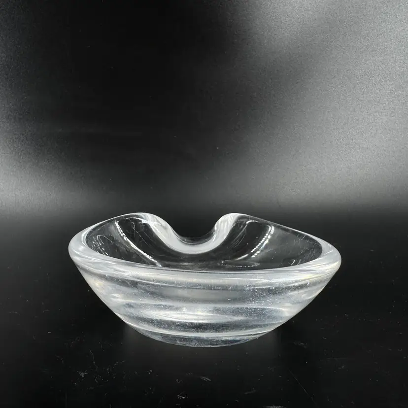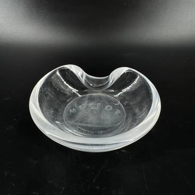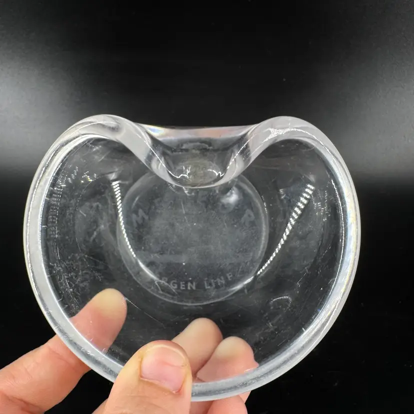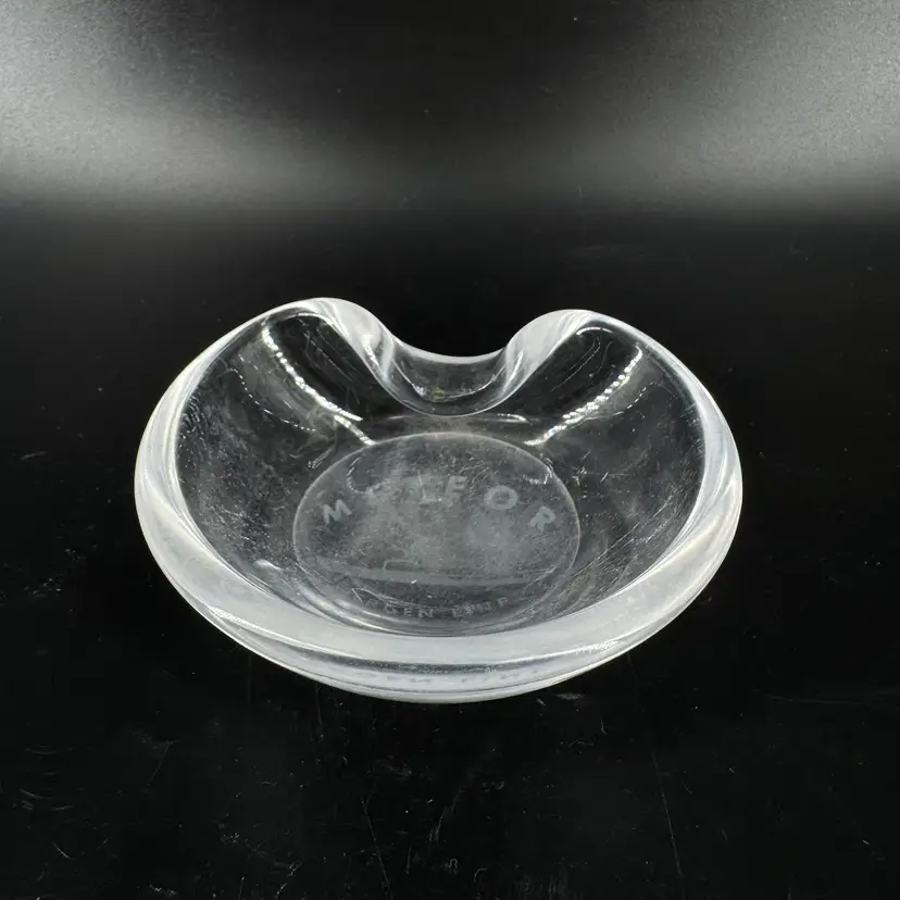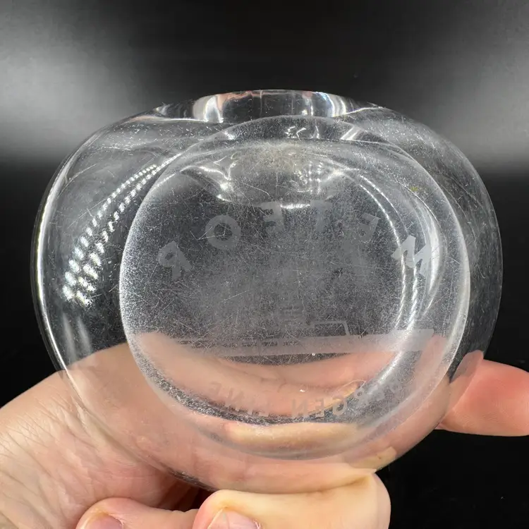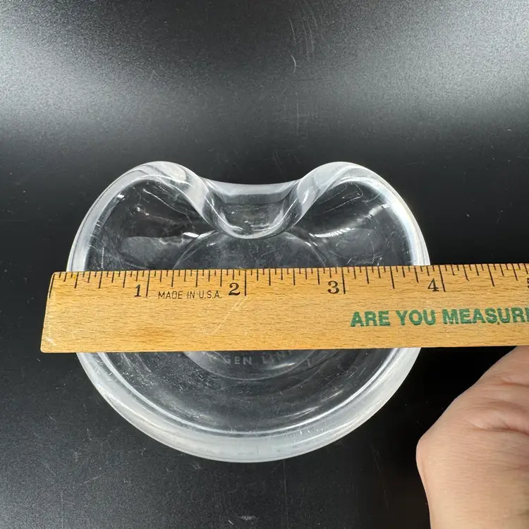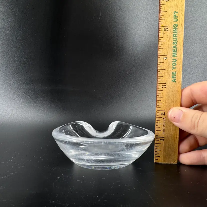 Width is approximately 4” Height is approximately 1” No chips or cracks Does have scratches and the bottoms is worn can be seen in the photos