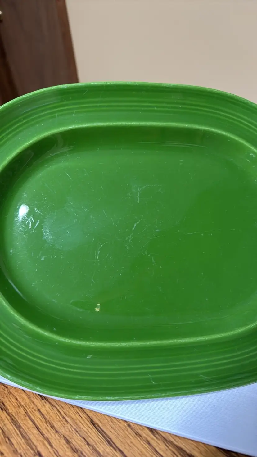 Metlox COLORSTAX Oval Serving Platter Forest Green 13.25” X 10” MADE IN CALIFORNIA Excellent condition with no breaks or chips, it does have some use scratches. (273124th)