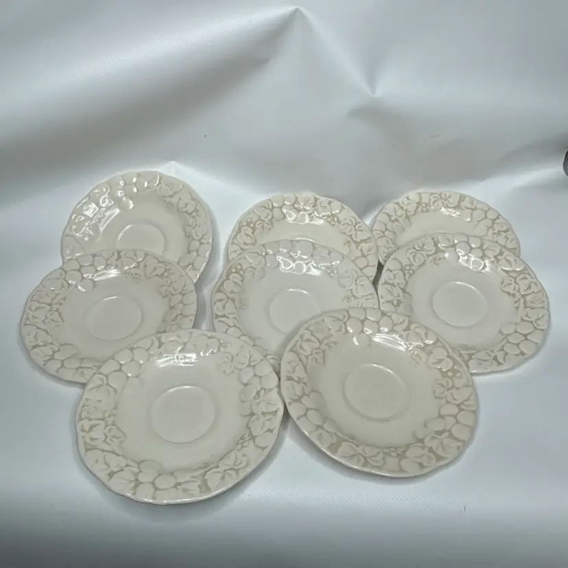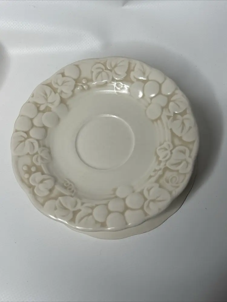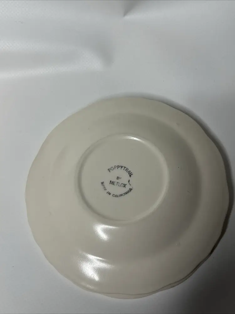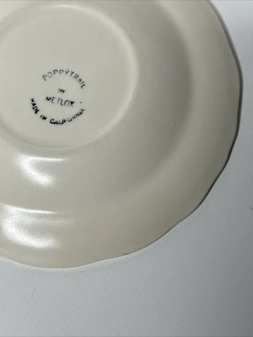 Made in California Metlox’s Poppytrail Antique Grape saucers. There are some manufacturers imperfections on saucers. Please see all photos and if you have any questions feel free to contact us. Thanks for stopping by, hope you have a Blessed Day. Measurements are in photos.