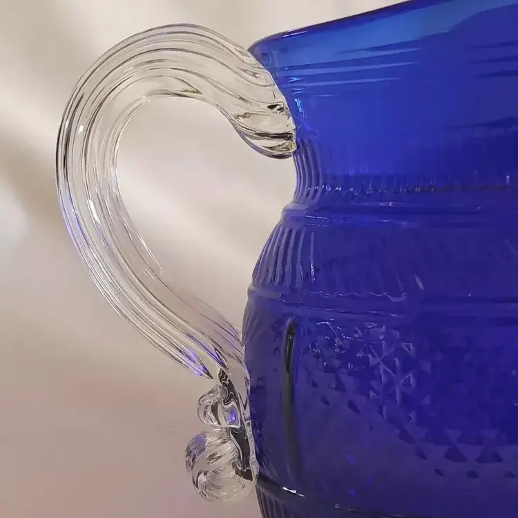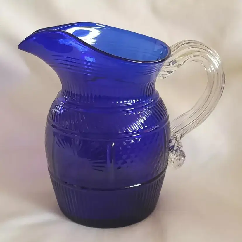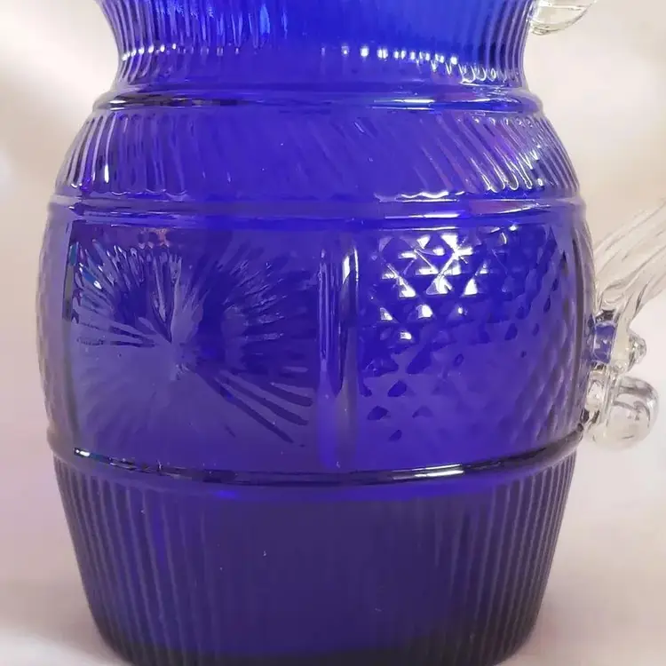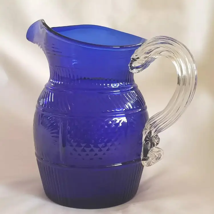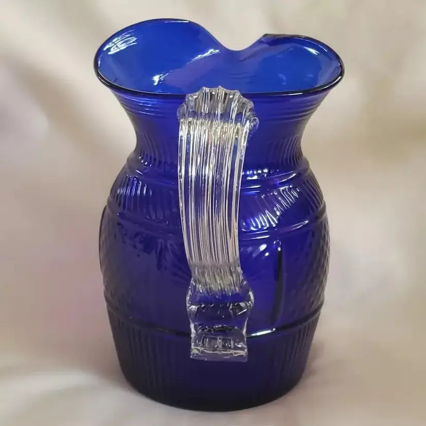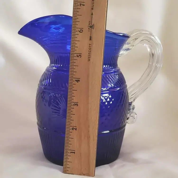 Vintage Metropolitan Museum of Art Hand Blown Sapphire Blue Glass Pitcher 6½" tall. Used condition with no apparent signs of use or apparent issues. Please view all the photos and read the entire item description and please ask any questions prior to purchase when possible.