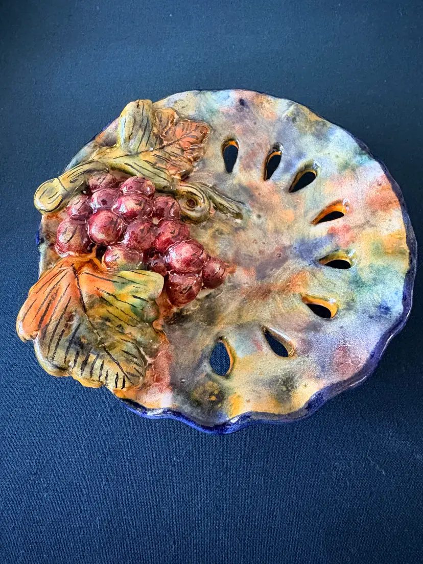 Handcrafted and hand painted 3d fruit pottery dish