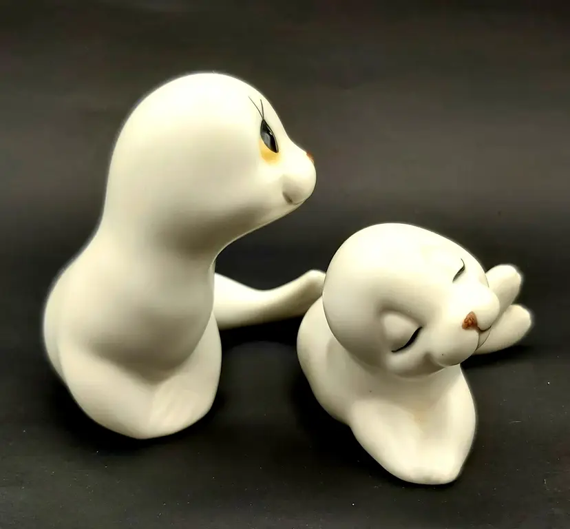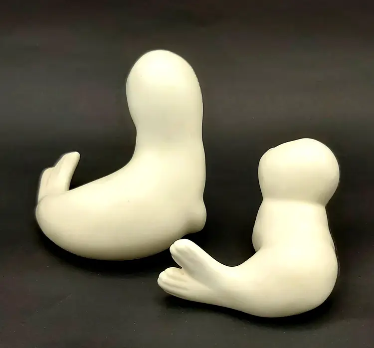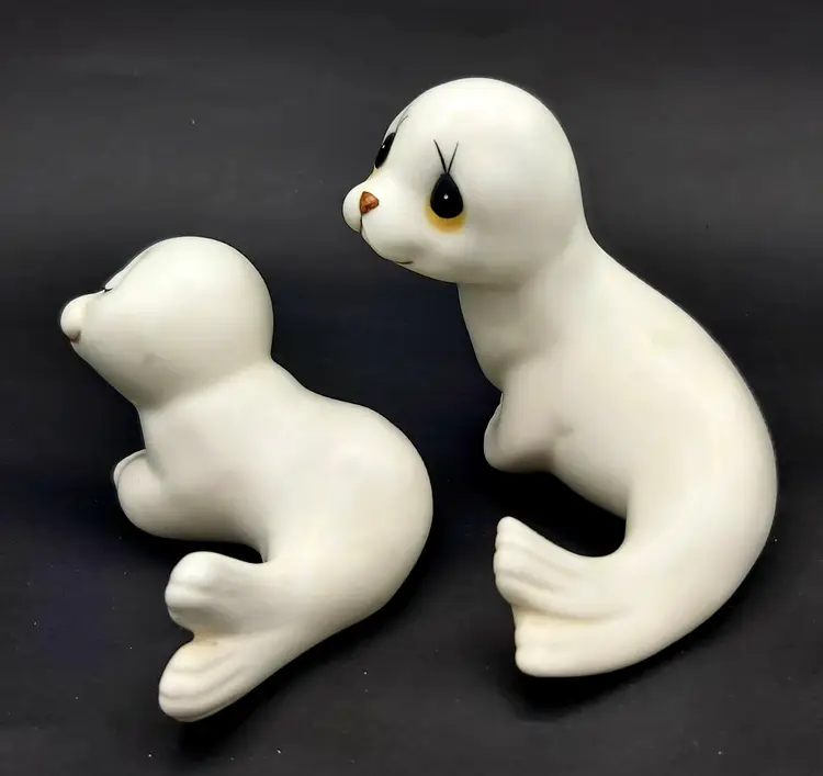 Look at that face, so darling!!! Excellent Used Condition. No chips or cracks. Smooth matte satin glaze texture and feel. See pictures for details. Seal cow measures approx. 4.5" long x 3.5" wide x 3.75" high. Seal pup measures approx. 4" long x 3.5" wide x 2.5" high.
