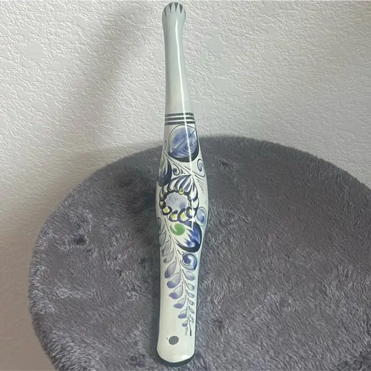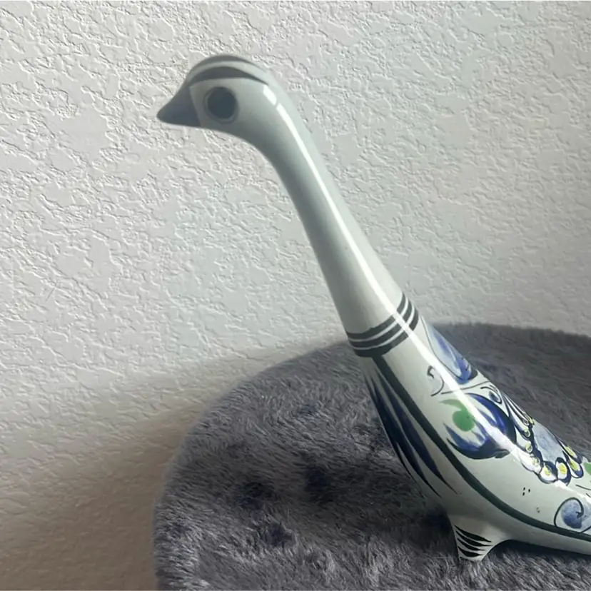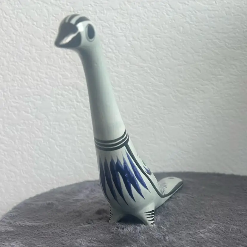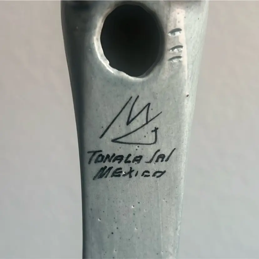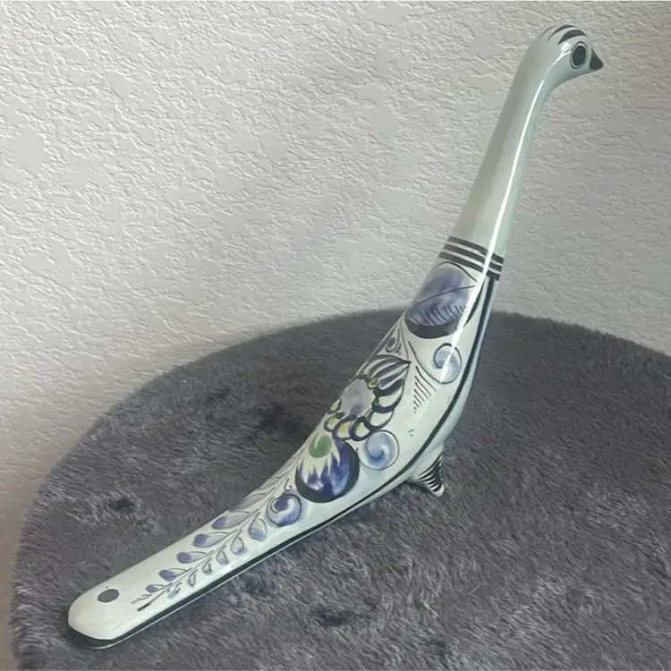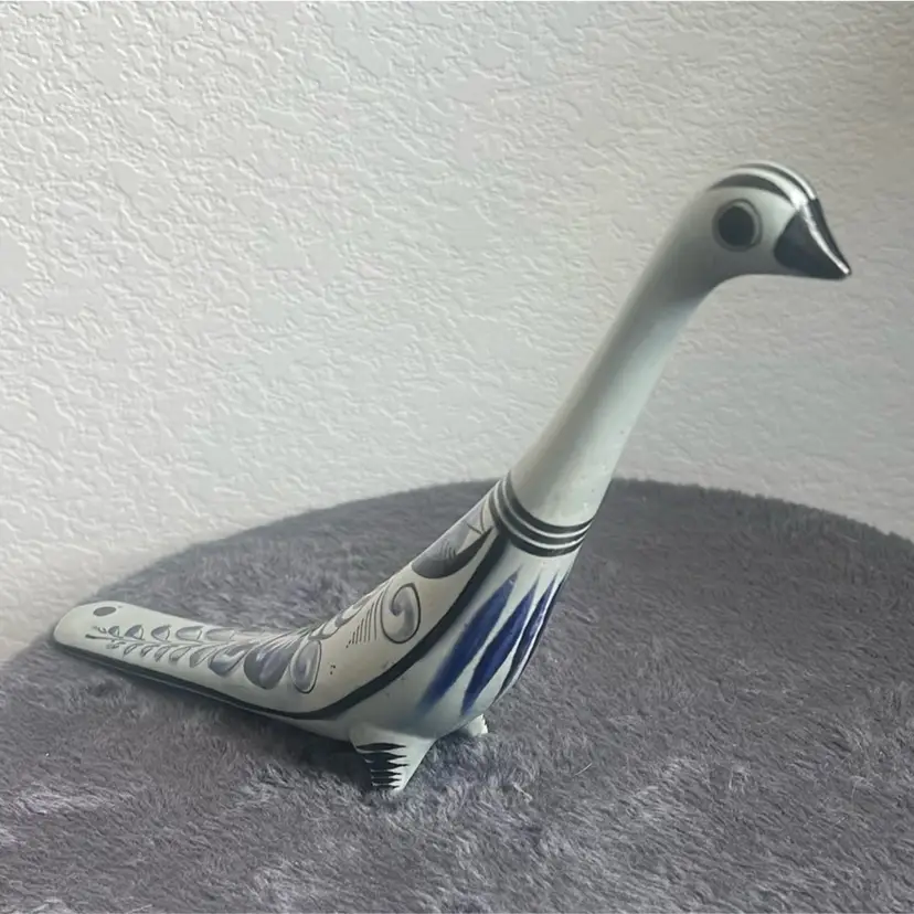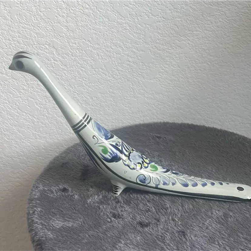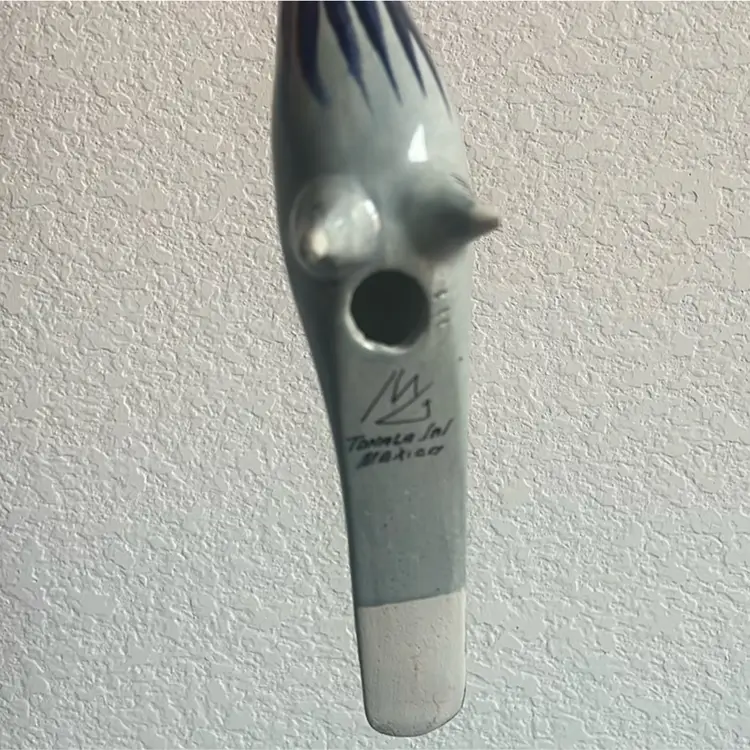 Mexican Ceramic Tonala Dove Bird Hand Painted and Signed 6 1/2” tall 13” from nose to end of tail IT’S GOT A BIRD ON IT