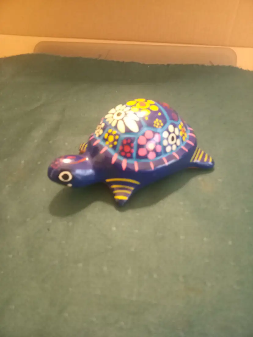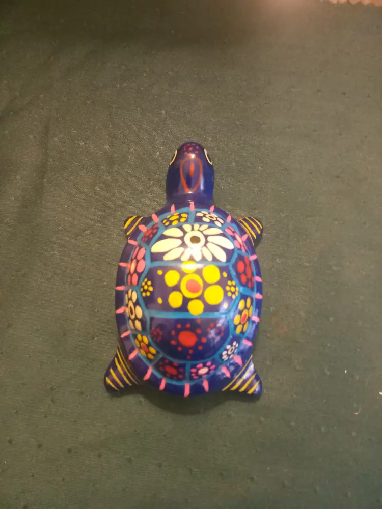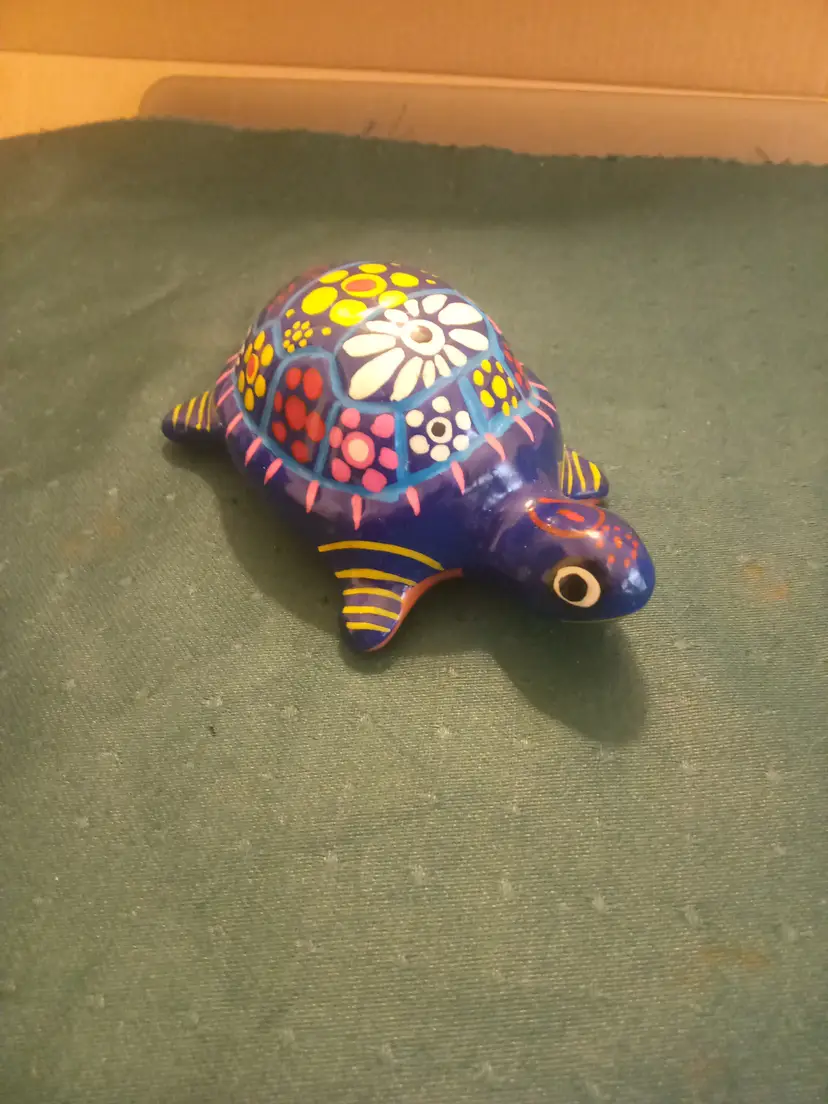 Talavera-style Mexican folk art terracotta hand-painted turtle (We call him Herbert)