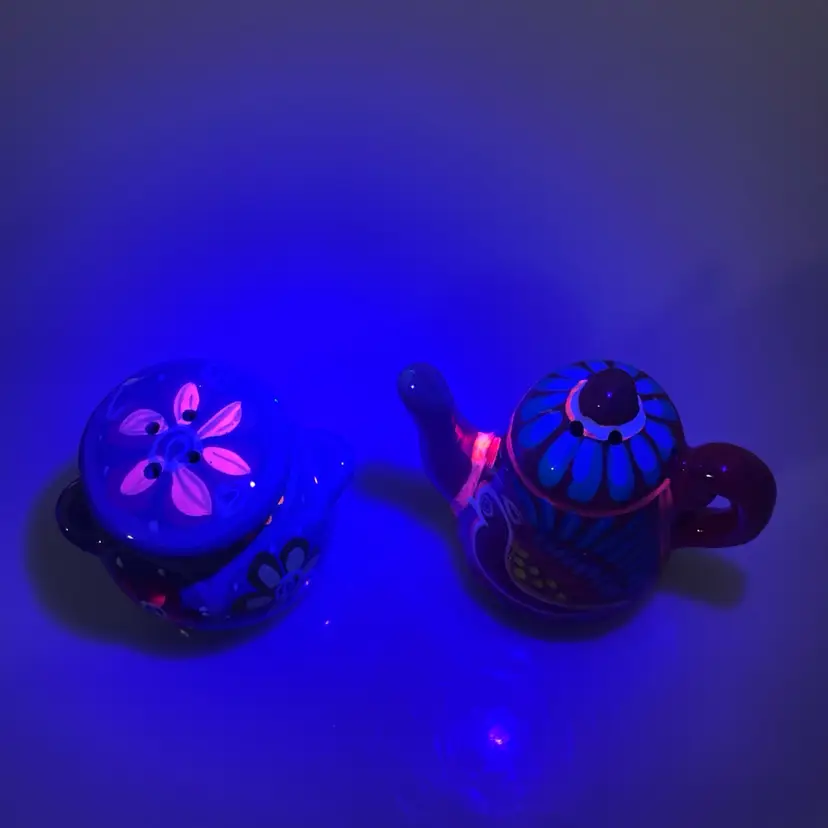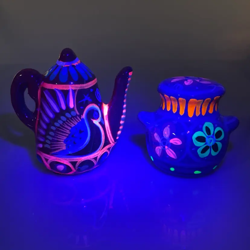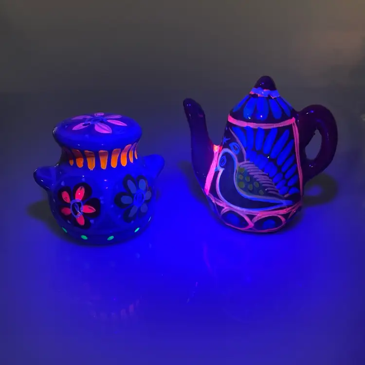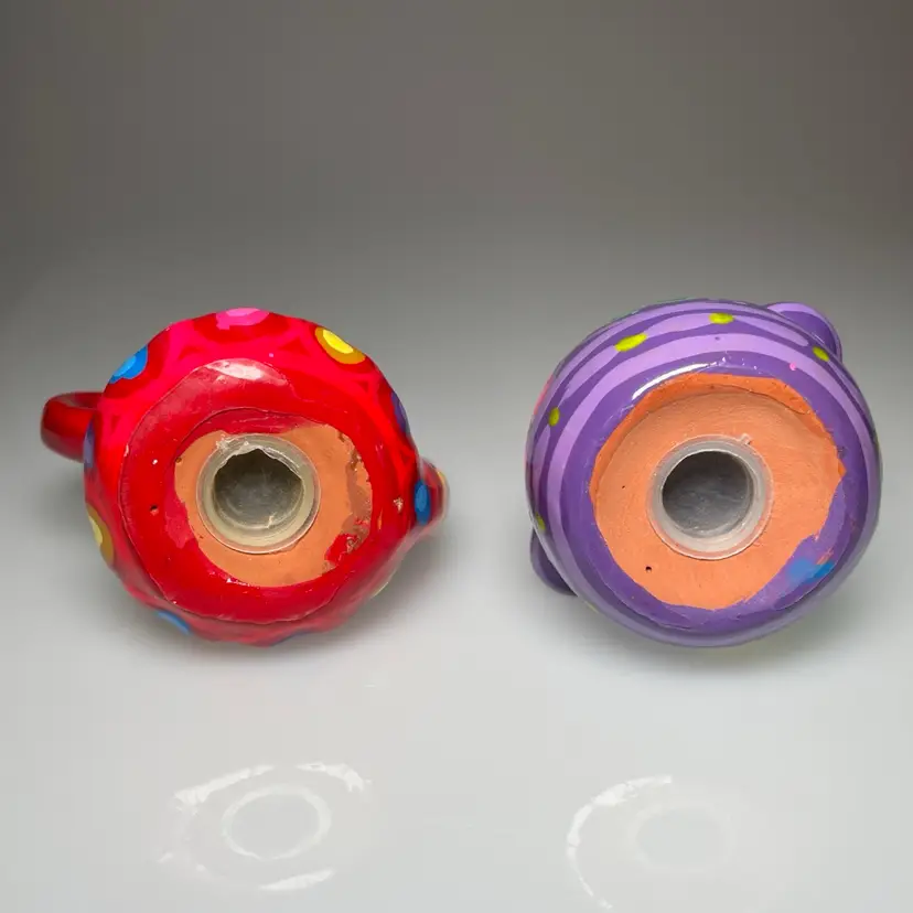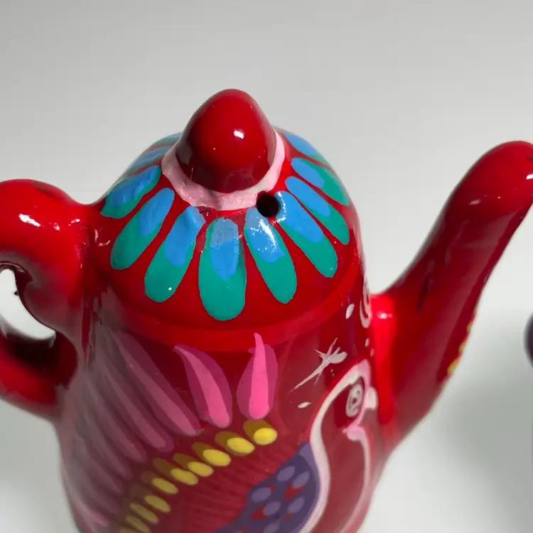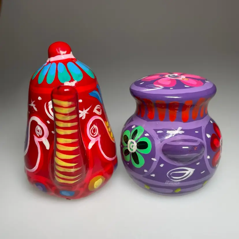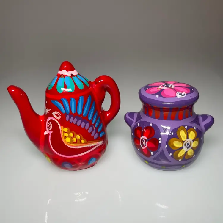 Good Preowned - visible wear and/or minor flaws present. Some paint cracking on red shaker. No chips or cracks to the ceramic.