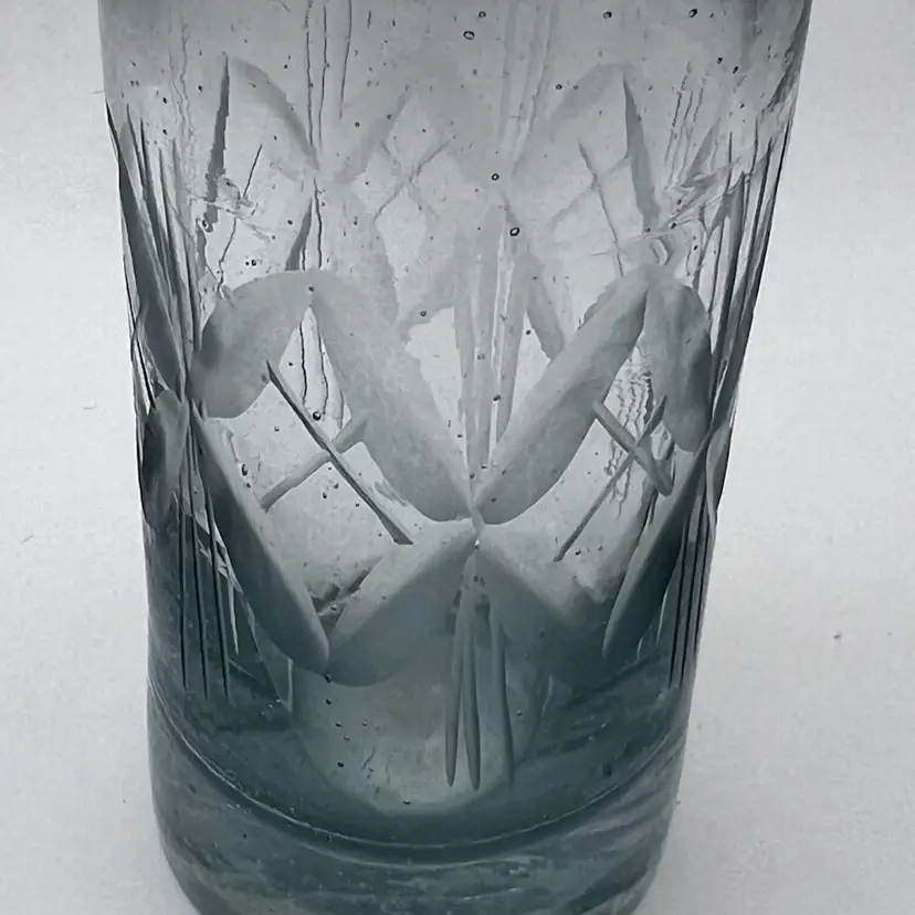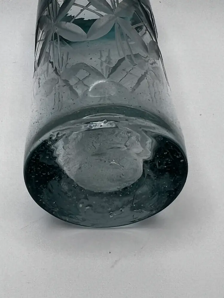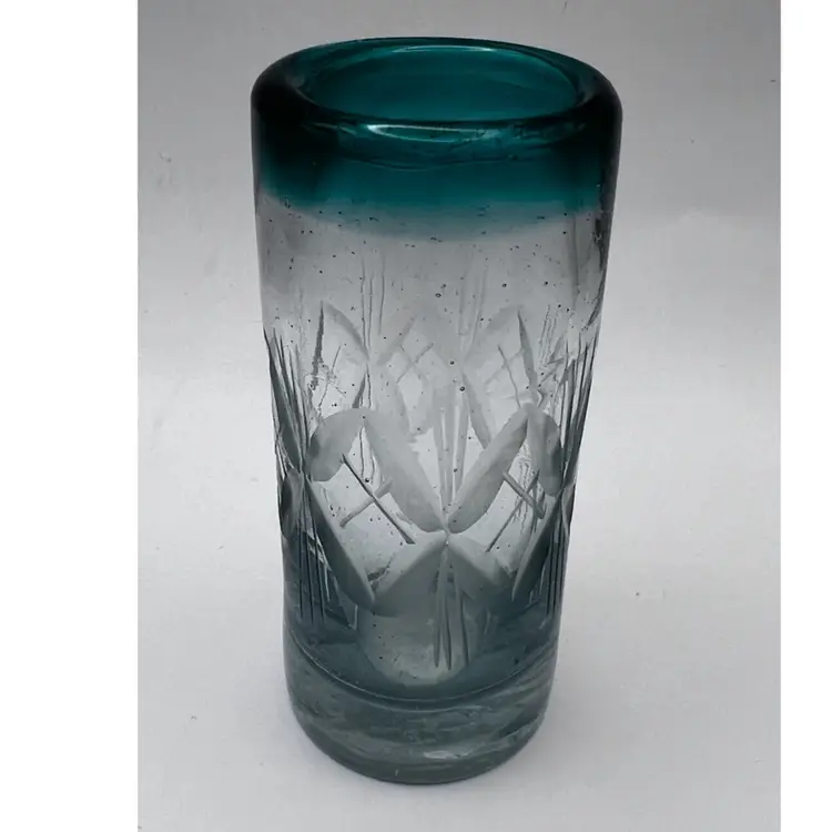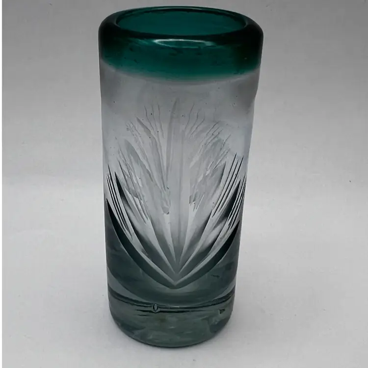 Hand blown handcut Mexican shot glasses with green rims No chips or cracks 3-5/8” tall 2 fl ounces