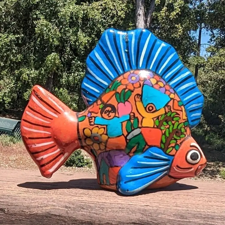 Mexican Isidoro Talavera Fish Folk Art Hand Painted Multicolored Mythology Scene Fish
