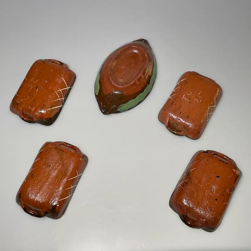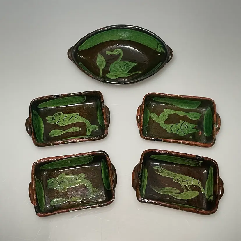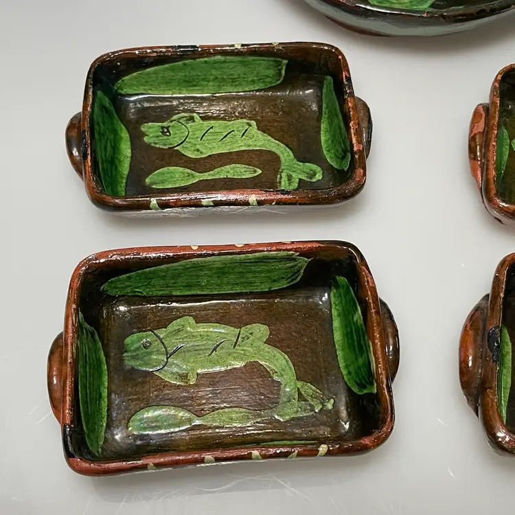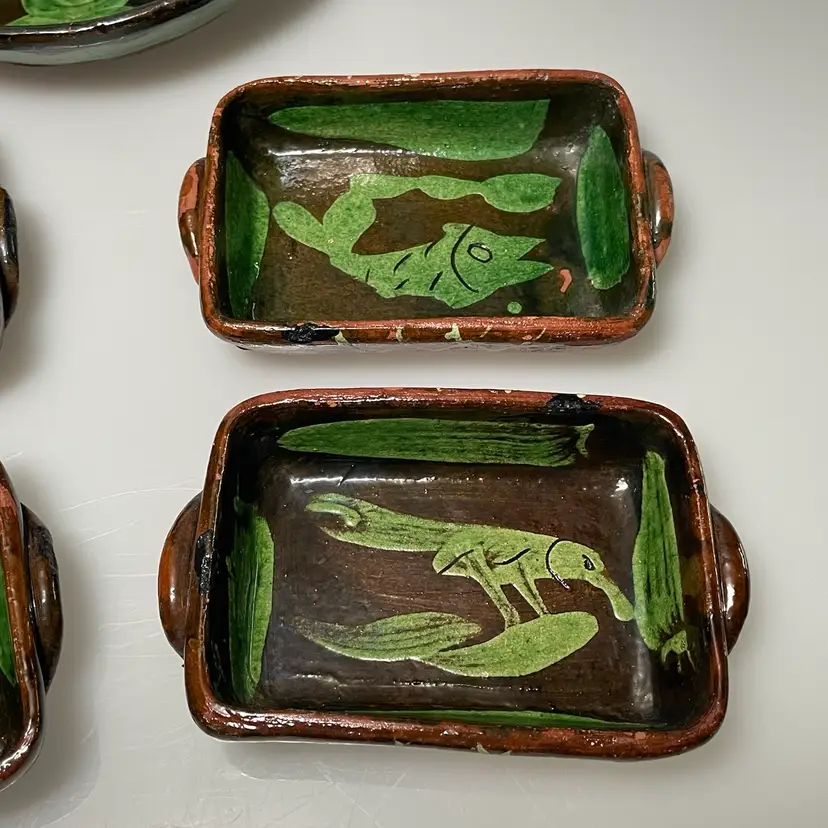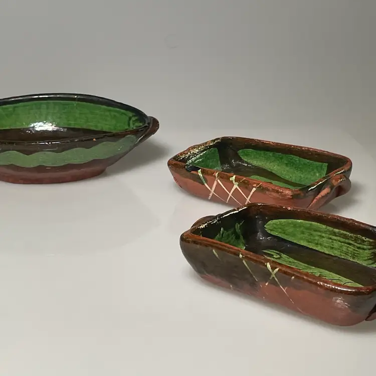 Good Preowned - visible wear and/or minor flaws present. Scant chipping to glaze, primarily along edges, pictured where noted. No cracks, nothing significant. Good overall shape for their age.