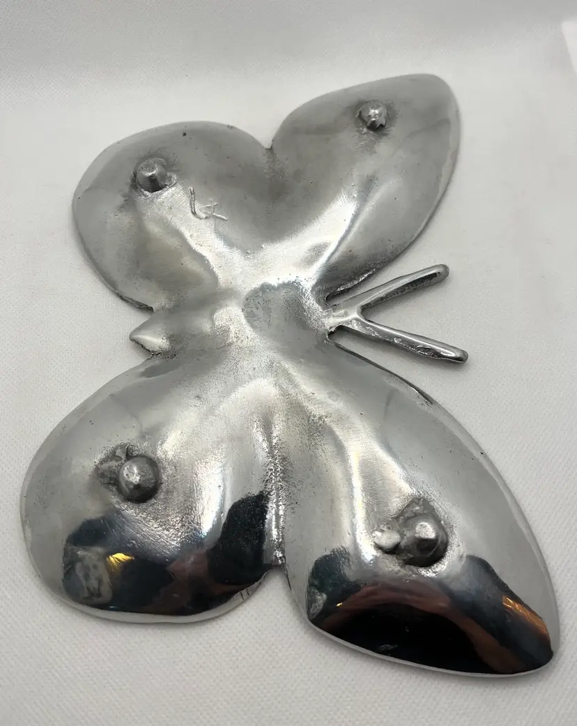 9 x 6.5 x 1 inches This metal has a very similar look and feel to silver, it is actually an alloy made of mostly aluminum. While this pewterware can be used for cooking and serving food, we do not recommend using it for highly acidic food such as anything with lemon or vinegar or washing it in a dishwasher. Mexican pewter requires very little maintenance to stay looking shiny and beautiful.