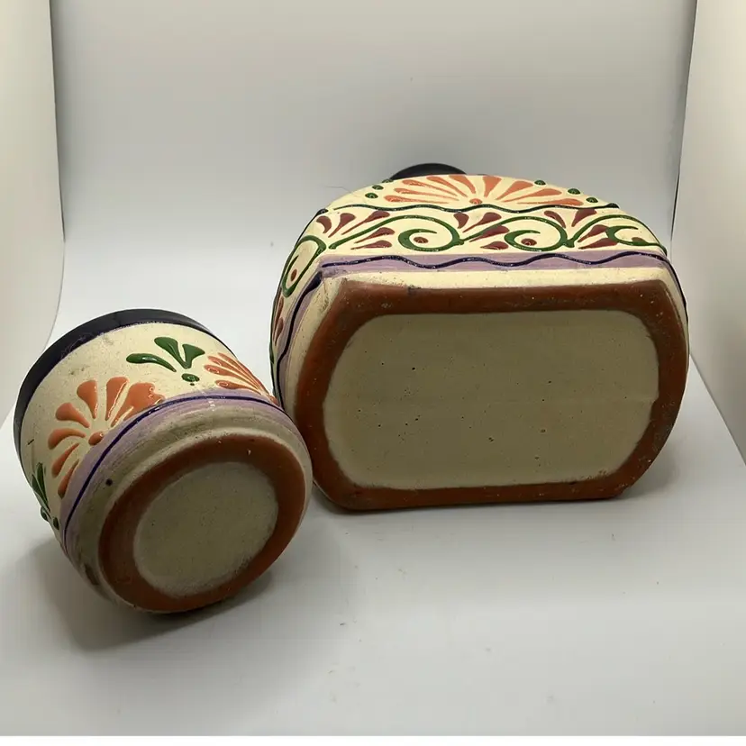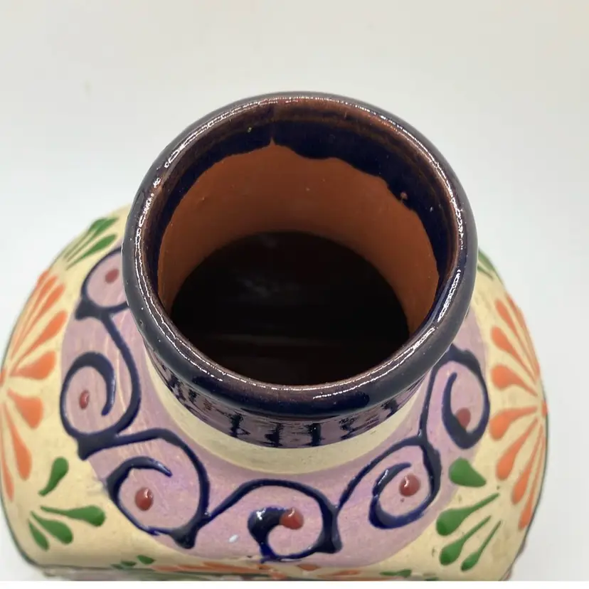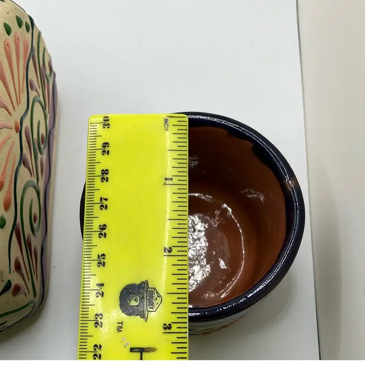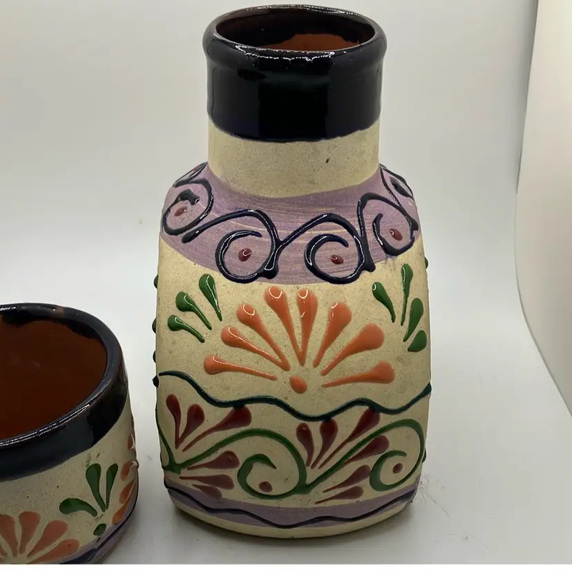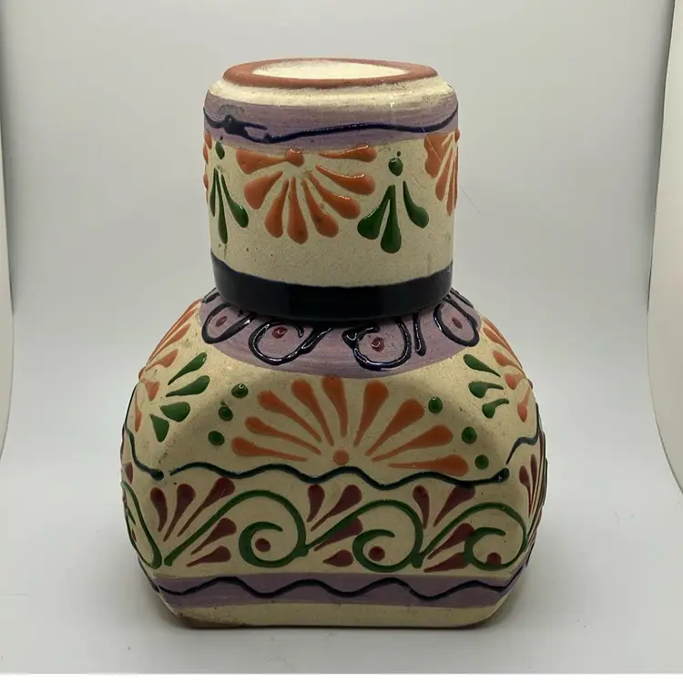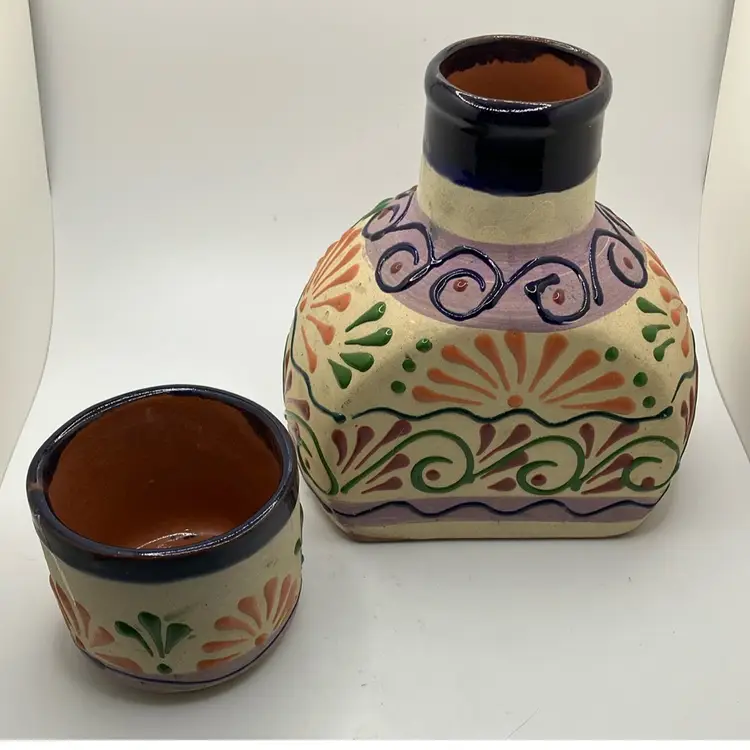 Good condition- a couple spots of smudged paint and tiny glaze miss on rim of cup. No chips or cracks.