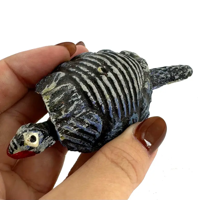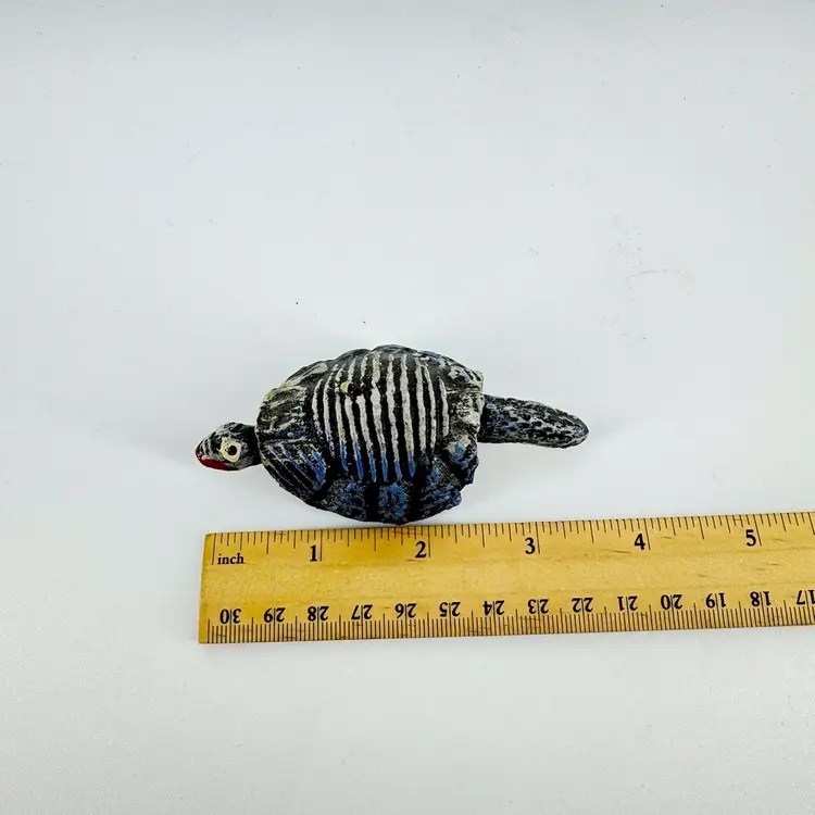 Length is approximately 4” There are no chips or cracks anywhere. It is signed Mexico on the bottom. The head and tail move like a bobble head.