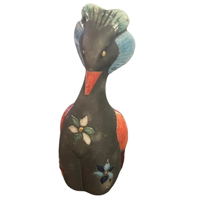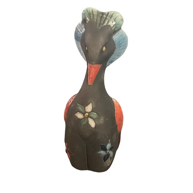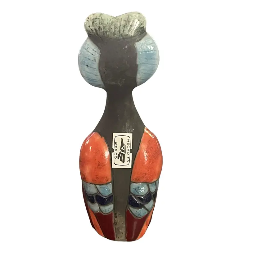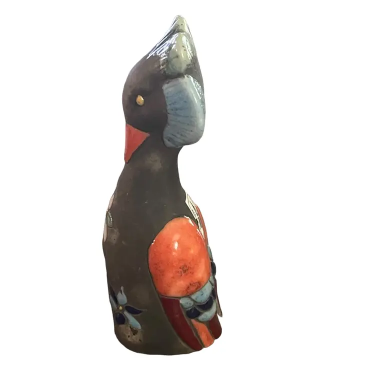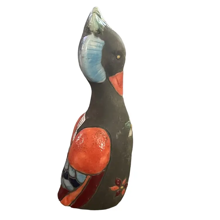 Colorful Raku pottery bird made in Mexico.