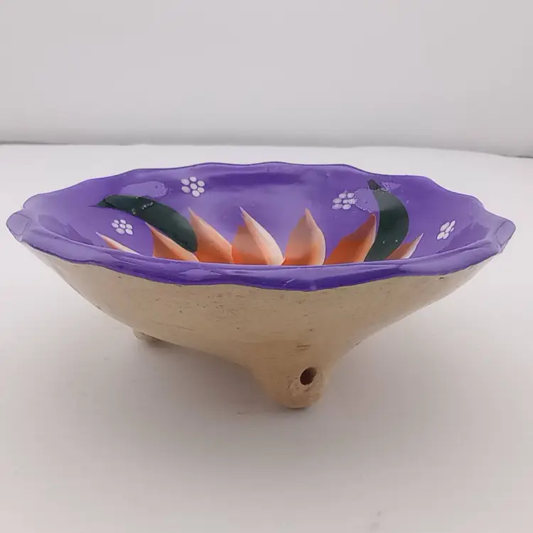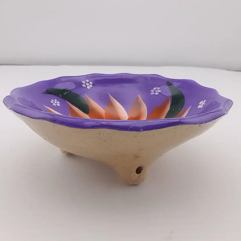 It's a beautiful little salsa dish from Mexico. At just under 4" across and 1.5" tall, it's the perfect size for trinkets and in excellent condition with no chips or cracks.