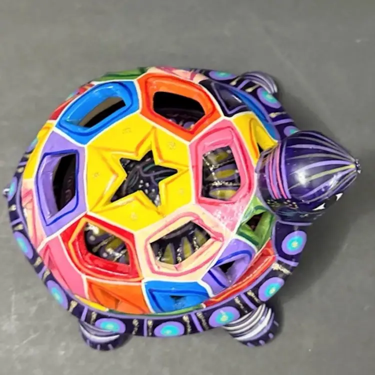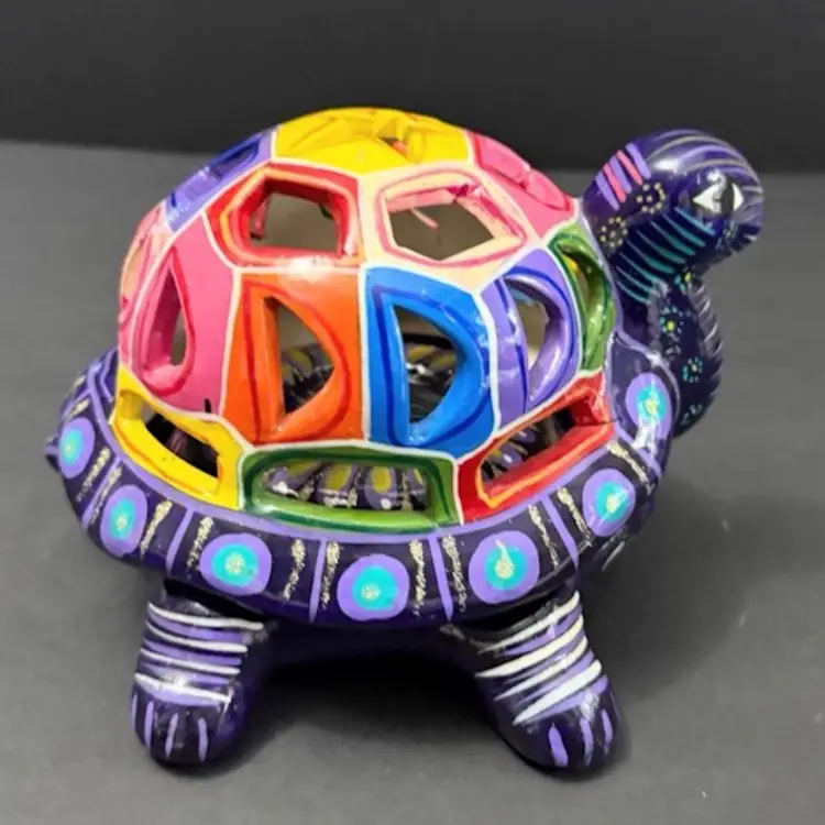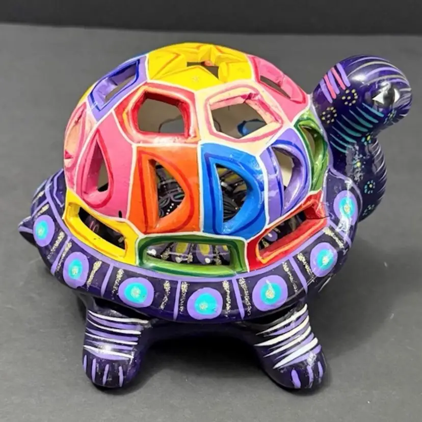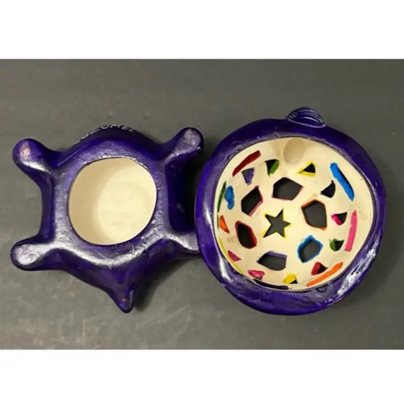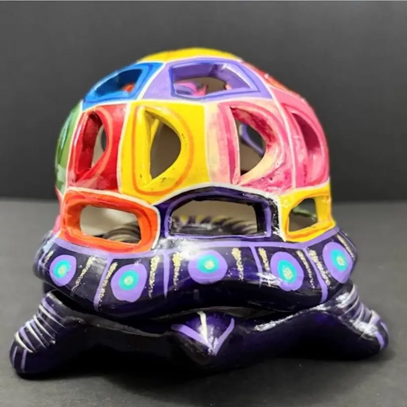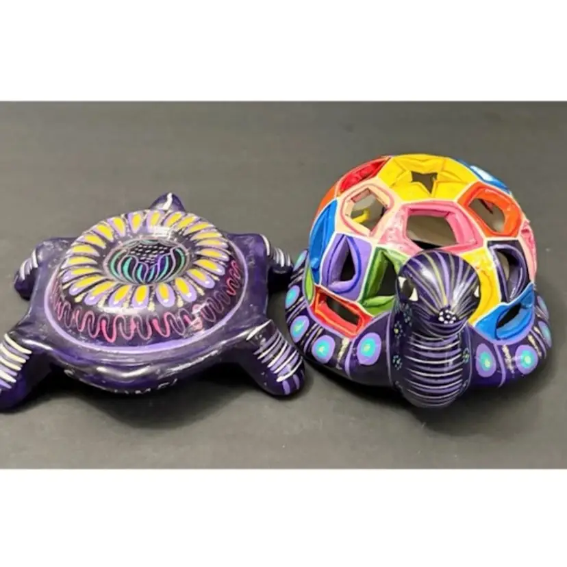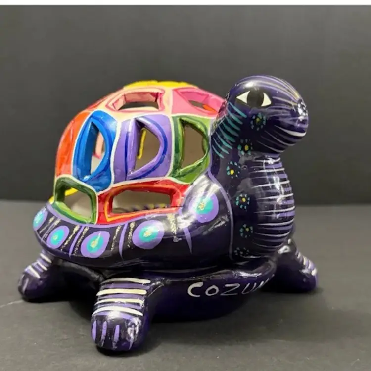 Add a touch of Mexican charm to your home decor with this beautiful Talavera pottery candle holder. Shaped like a turtle, this handmade fairy lamp is a stunning piece that will add warmth and character to any room. Crafted in Mexico, this candle holder embodies the rich cultural heritage of the country and is a must-have for collectors and enthusiasts of Latin American artistry.