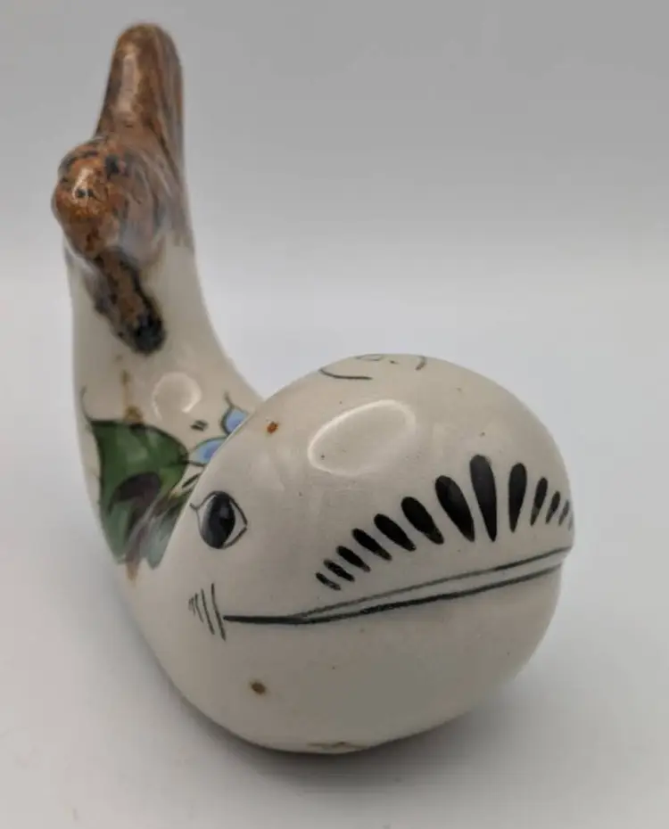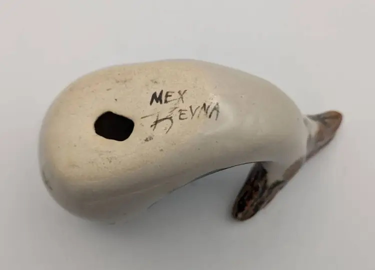 This is a sweet tonal whale, made in Mexico. Signed by artist. Nice addition to your Mexican theme decor, nautical - marine decor. Measures:5 inches long, approx. 2.25 inches tall.