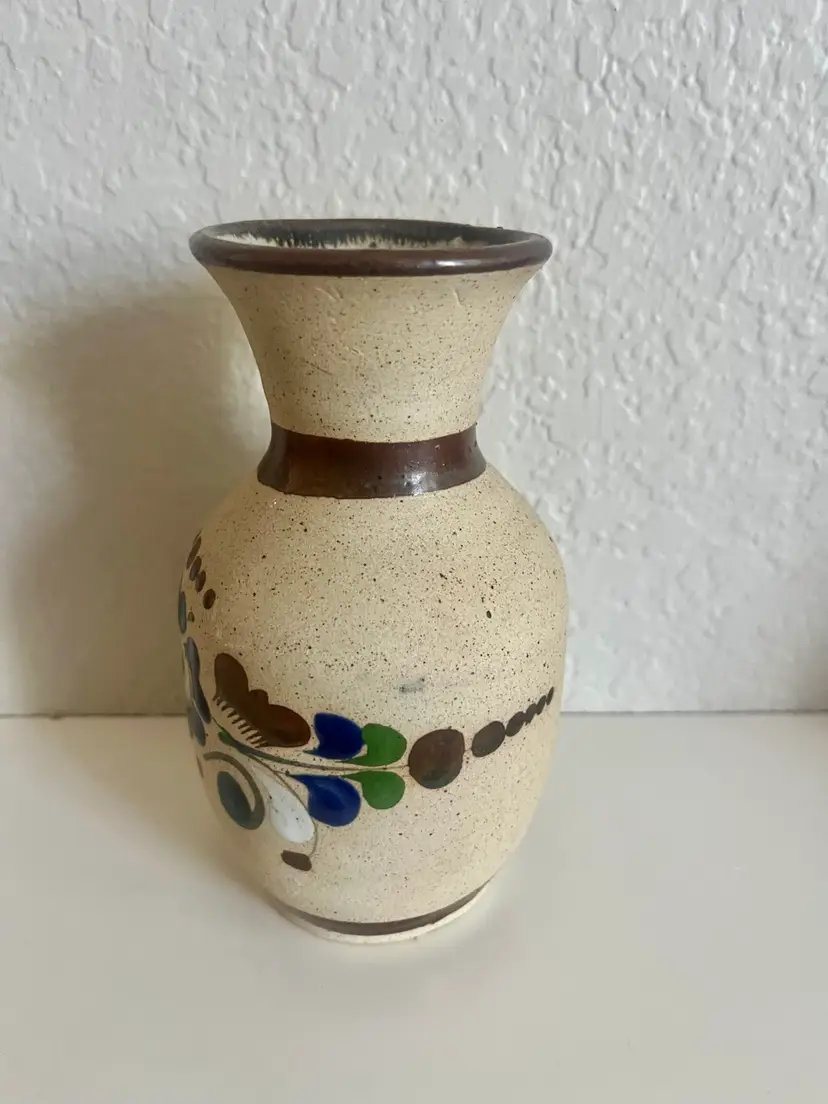 Pretty Tonala pottery vase with floral motif. No chips or cracks. 6 1/4” height
