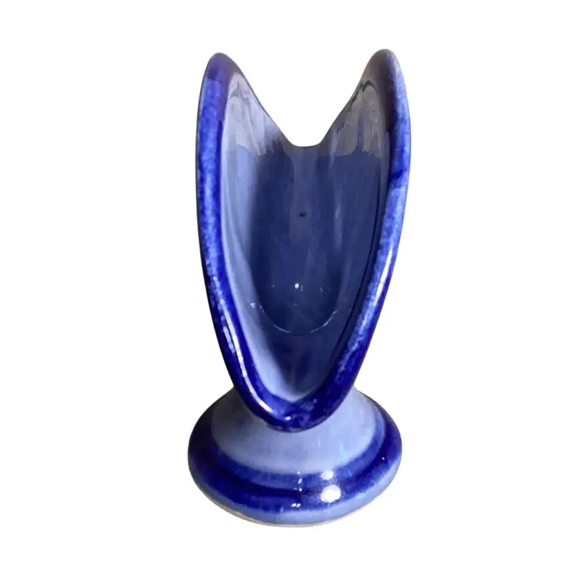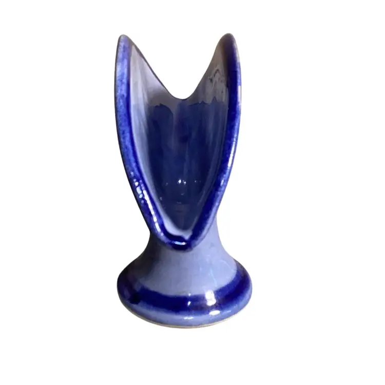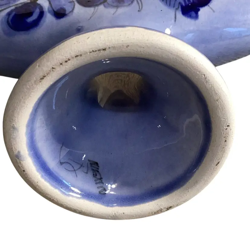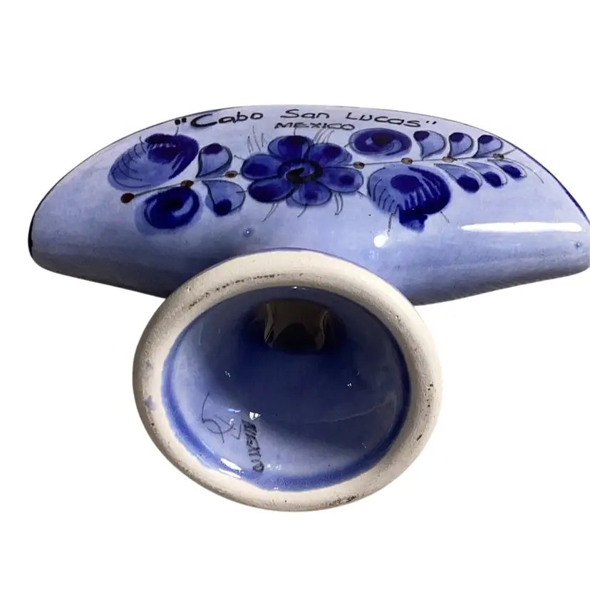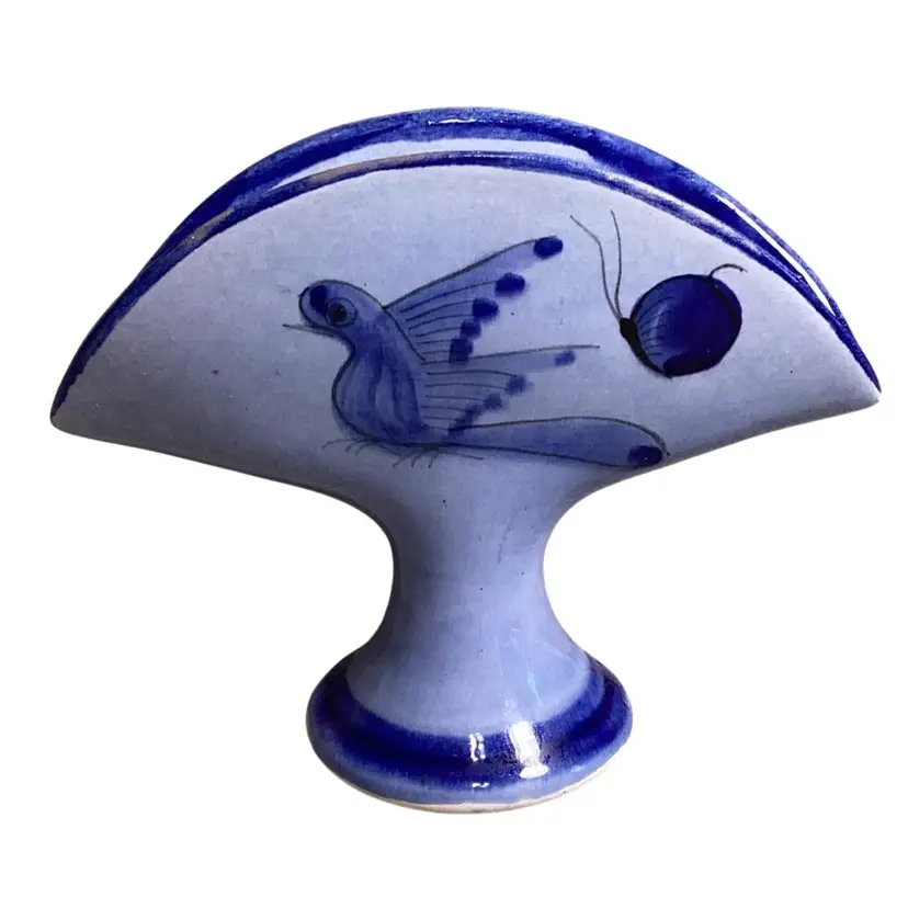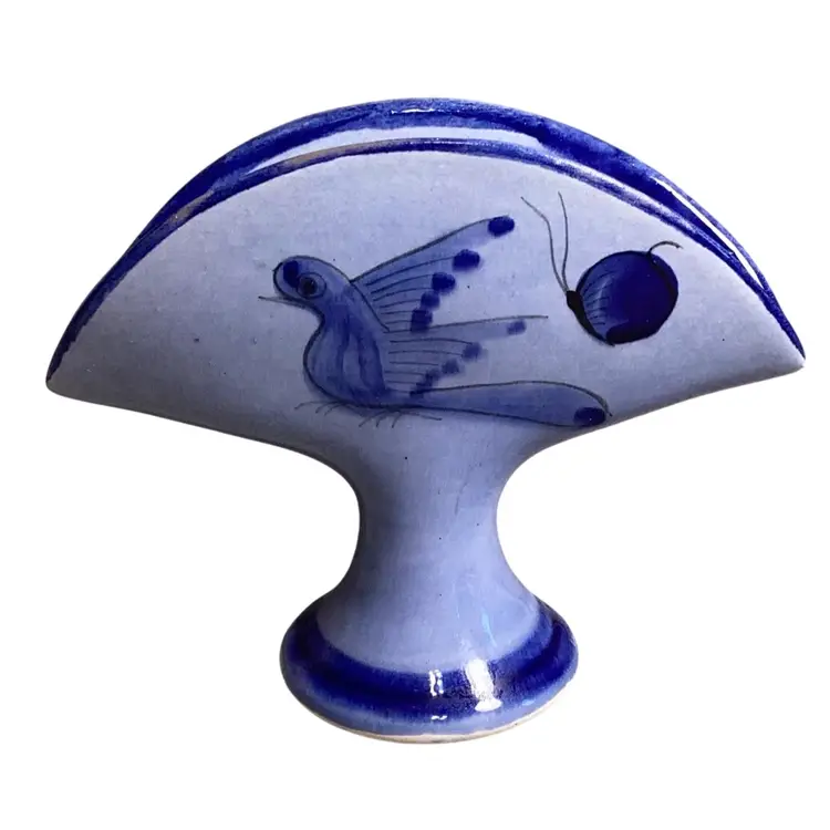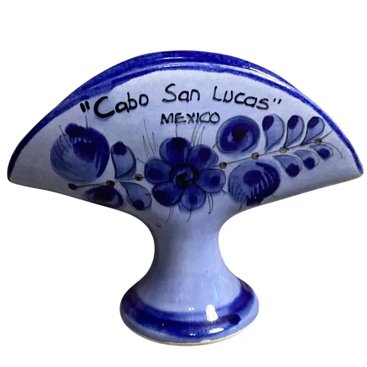 Mexico Blue Pottery Florals With Bird And Butterfly Napkin/taco Holder Signed 5” T X 6.5” W