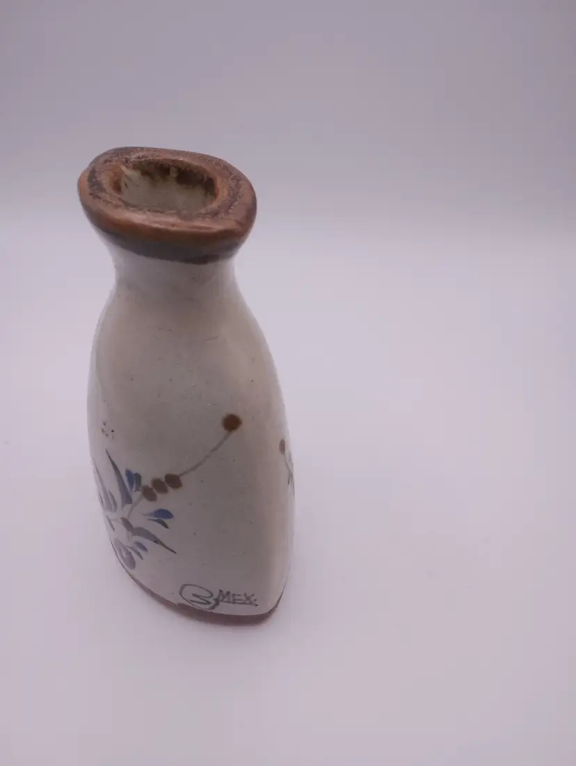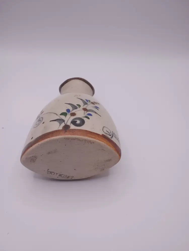 The Tonala Mexico Pottery Vase with Bird Fern design is a beautifully crafted piece that showcases the artist's intricate handiwork. With its 4" height and signature branding, this Mexican pottery vase is a unique and charming collectible item that embodies Mexican culture and craftsmanship. Made with care and attention to detail, this vase is a perfect addition to any collection of Latin American art and decor. no chips or cracks