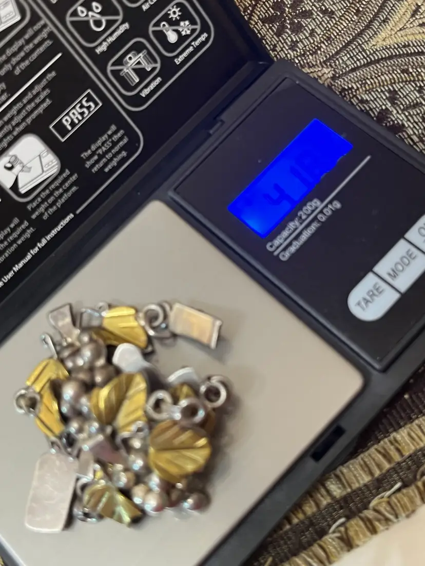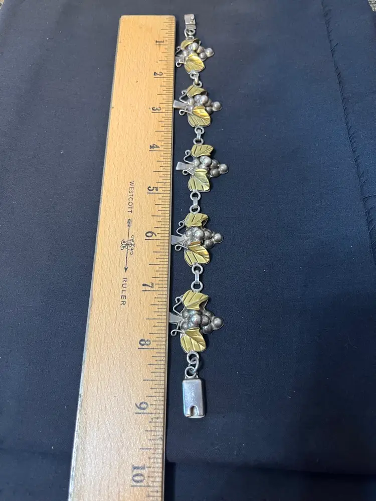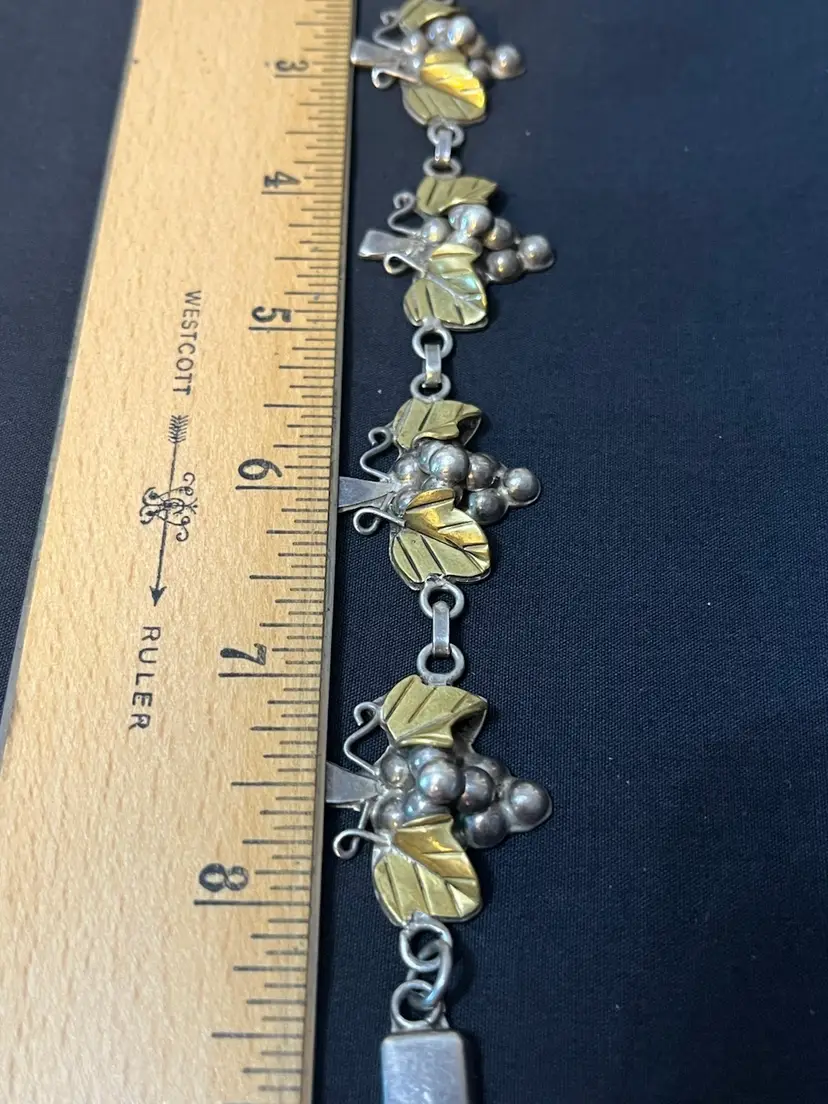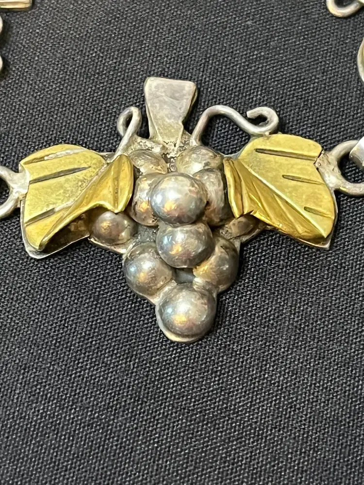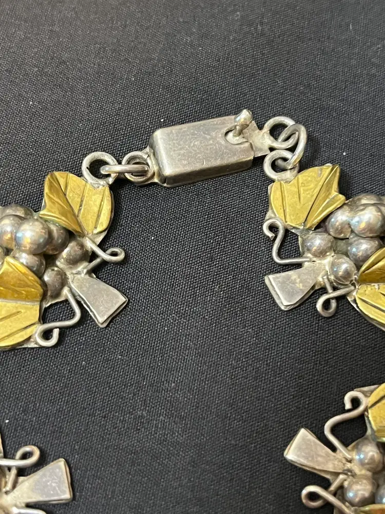 Very good condition Sterling silver positive with acid test. per Mark CASP information Tumbaga (gold copper alloy was used to detail leaves) 41.8 grams total weight