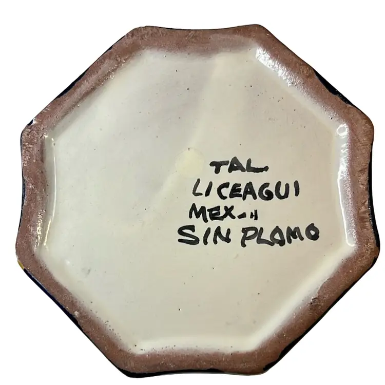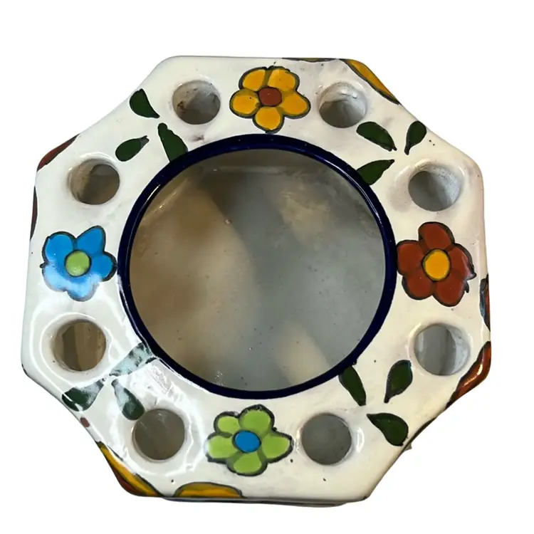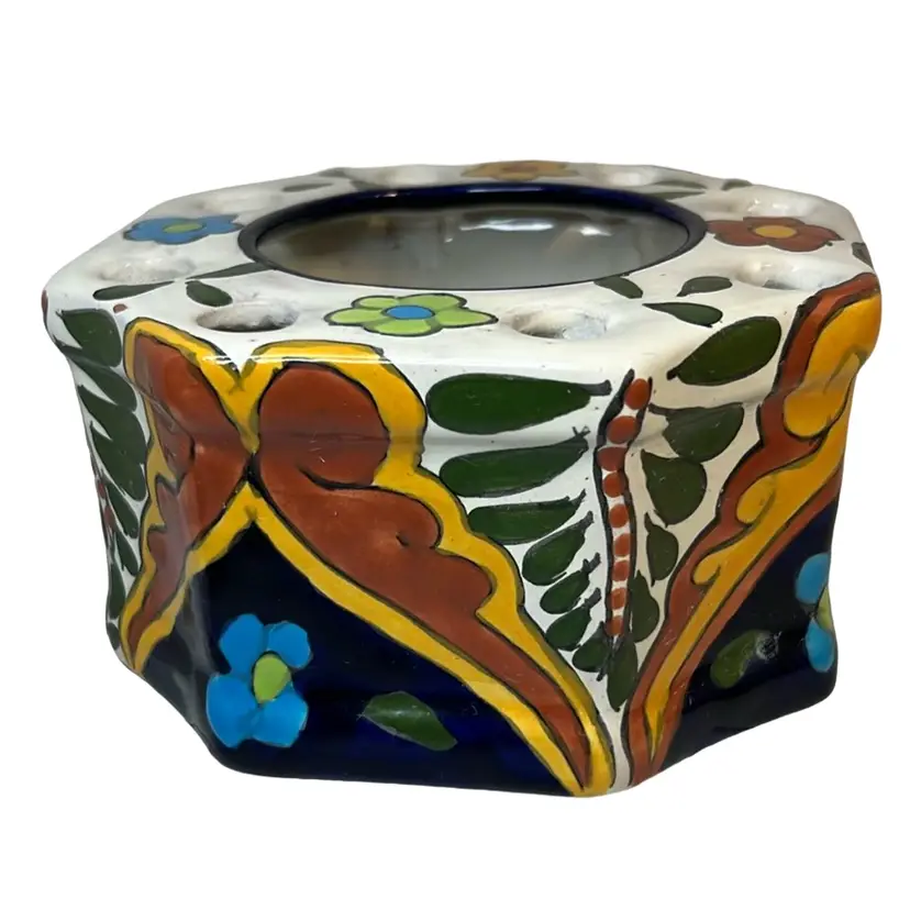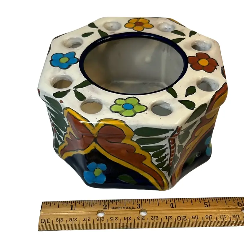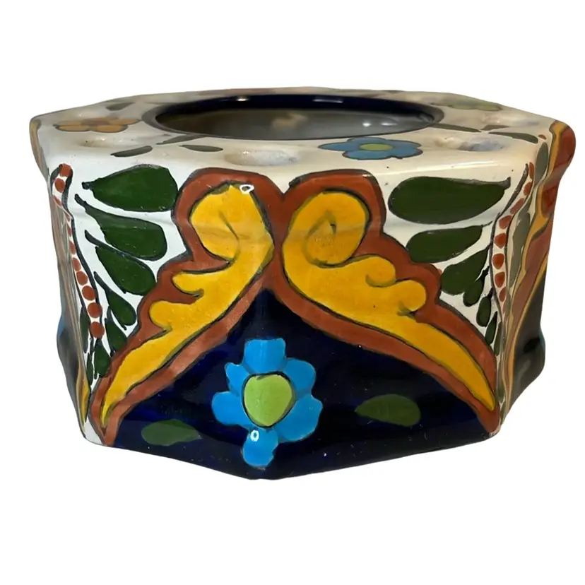 This hand painted Talavera pottery has many uses! Pretty blue, yellow green floral design. Artist signed.