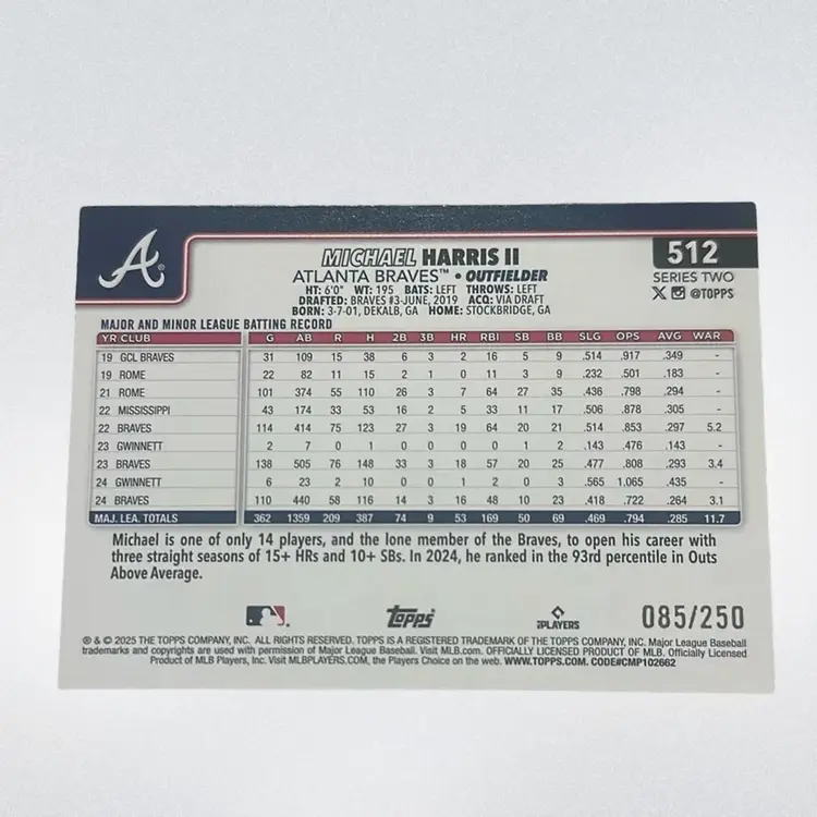 Michael Harris 2025 Topps Series 1 Purple Foil /250