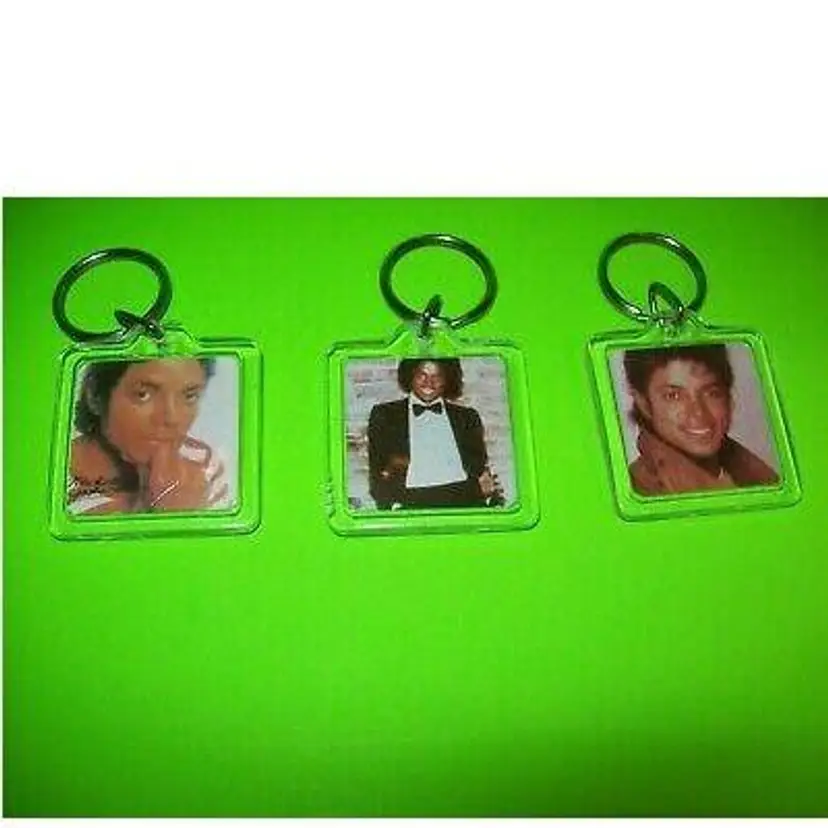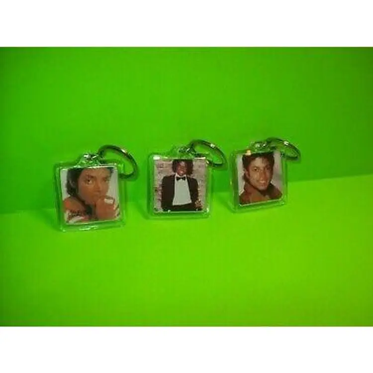 Vintage new old stock 1980s era set of (3) different photo key chains in excellent condition. Never used but has some mild age wear from being in storage all these years. These have a photo inside and are thick clear plastic. All have metal key hangers attached. Size is 1.5" square. mjkeychains12-24-2023-box2A