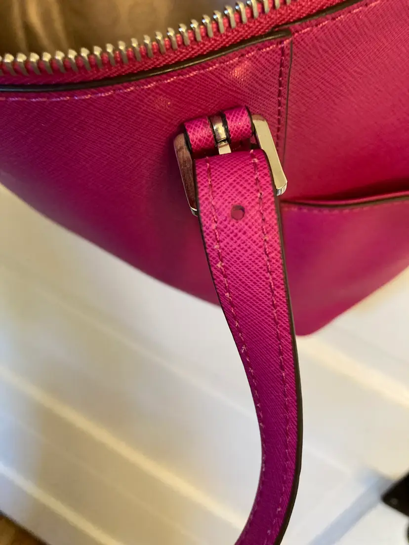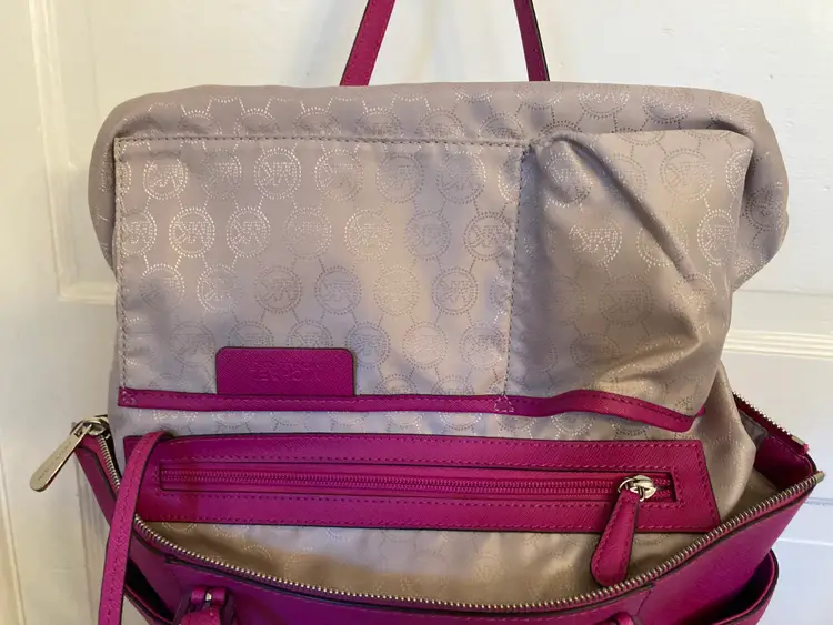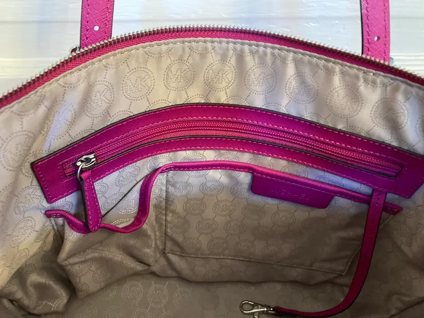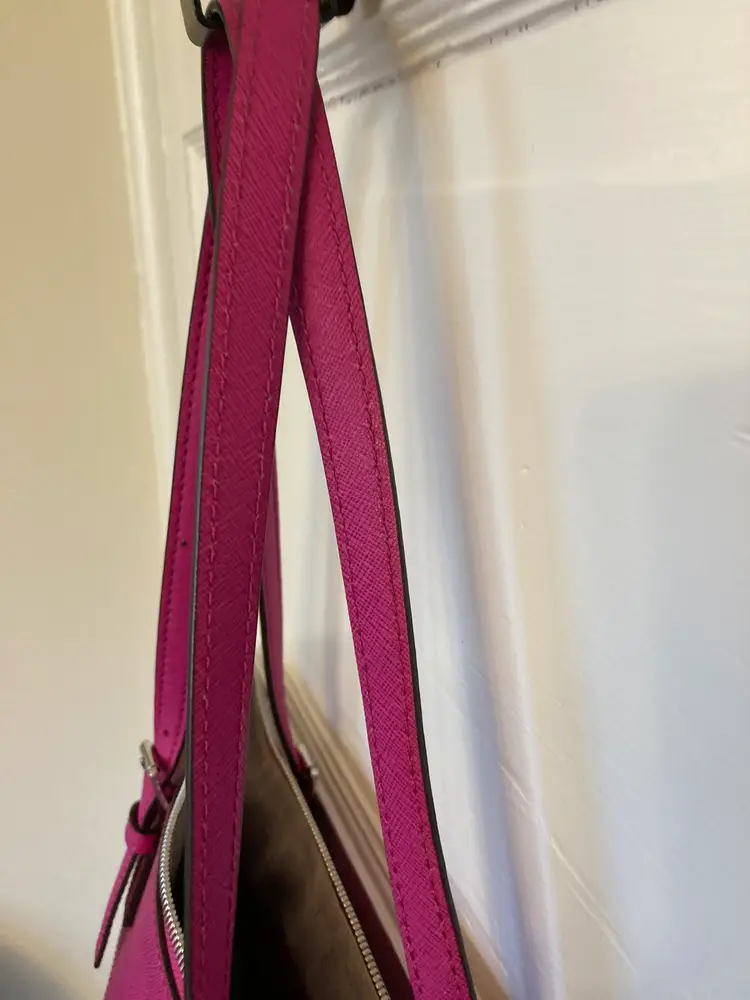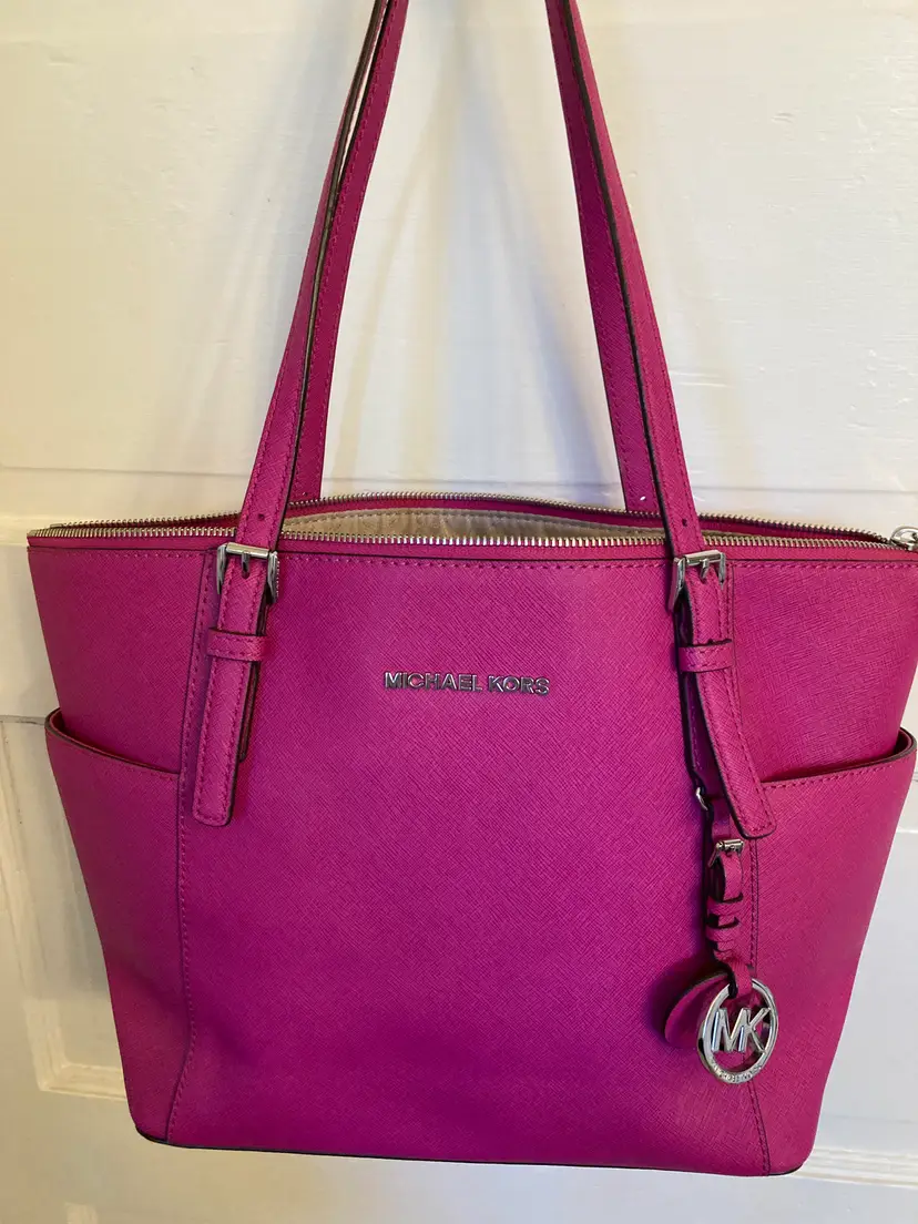 This is a Saffiano leather Charlotte tote bag is a timeless addition to your wardrobe. It features two side slip pockets for quick access to your phone and keys, while its top-zip fastening opens to a spacious interior that’s designed to hold your essentials for a day at the office—plus a change of clothes for the gym. A detachable charm finishes this carryall with covetable appeal.