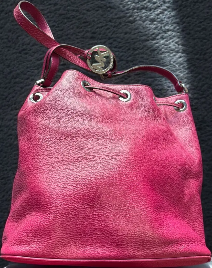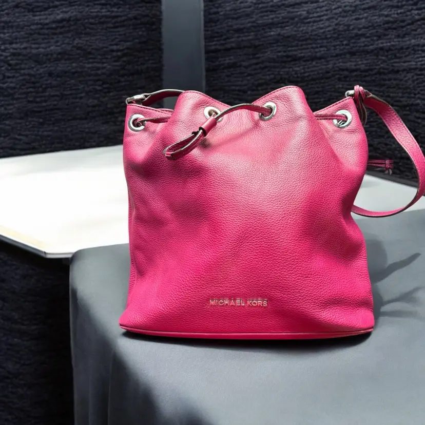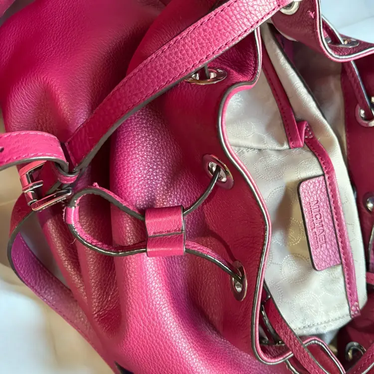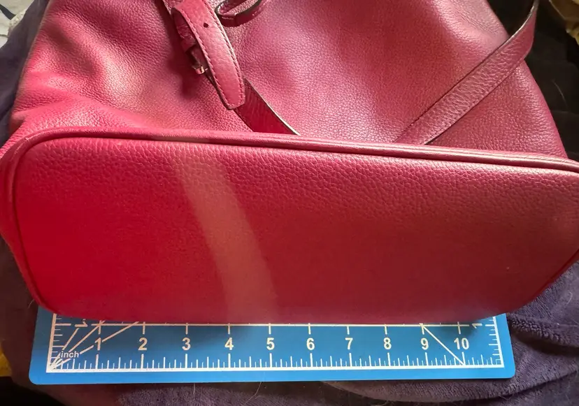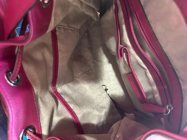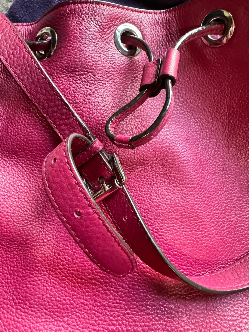 Burgundy drawstring hobo shoulder bag — can still smell the leather. In VGUC -color may vary in photos but it’s the lighting. Color is burgundy with no apparent stains or spots. Clean inside may have tiny spots I missed