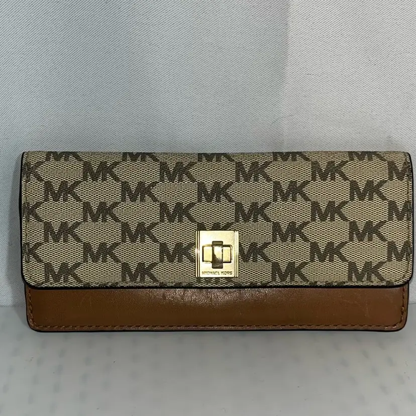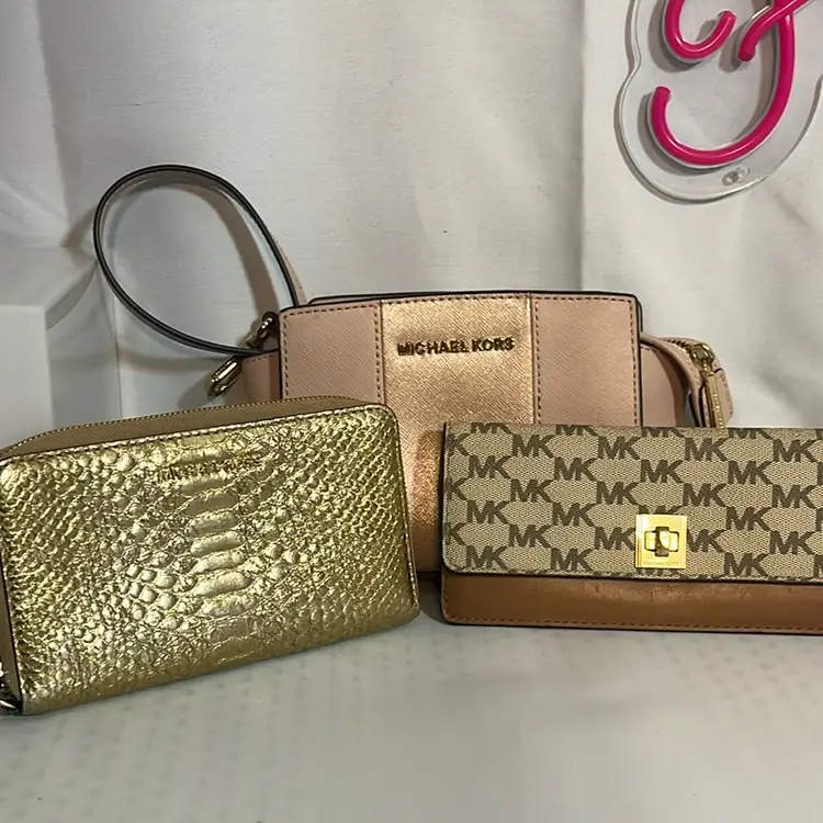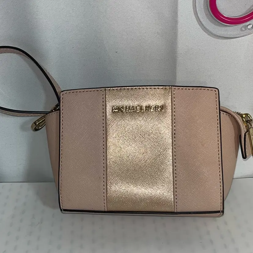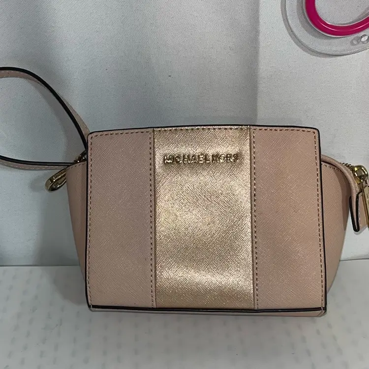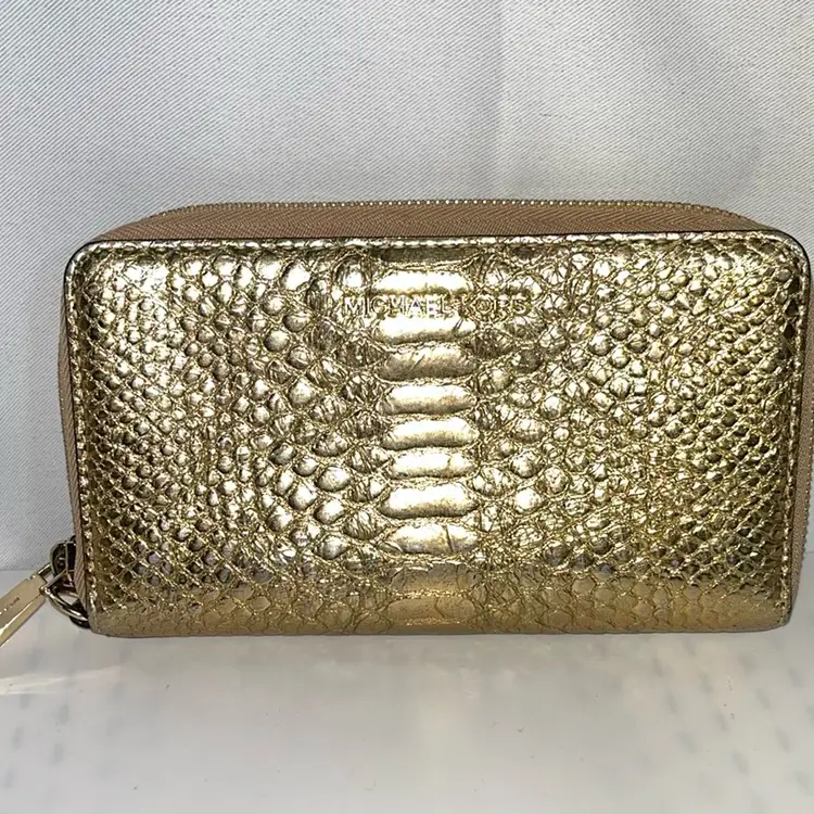 Mini crossbody Slim logo wallet Gold metallic zipper wristlet-less (missing wrist strap)