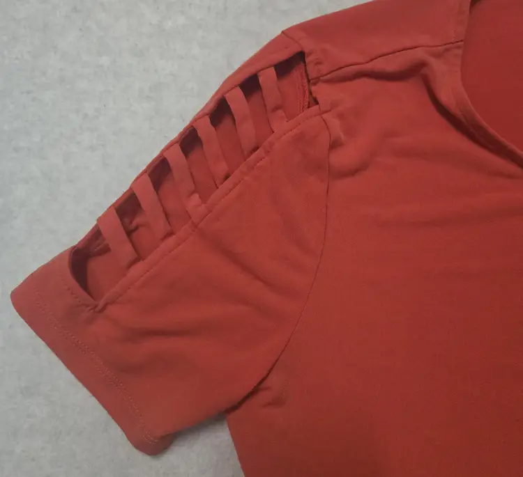 Style: Womens Short Sleeve ladder Cutout Shirt.