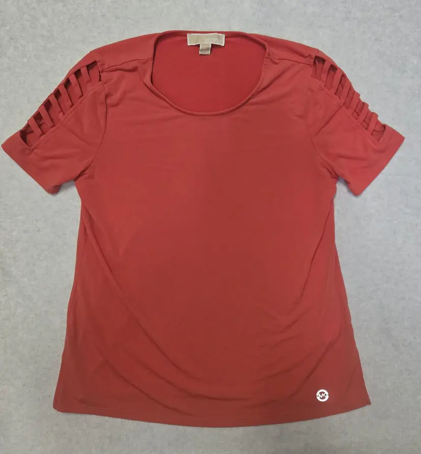 Michael Kors Top Womens M Pink Short Sleeve Ladder Cutout Stretch Top