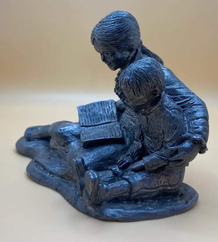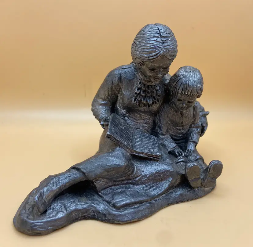 Crafted with meticulous attention to detail, this Michael Ricker pewter figurine captures a heartwarming moment between a woman reading to a young boy. The figurine, an art piece as much as it is a collectible, is a testament to the artisan's skill, showcasing the timeless appeal of well-crafted metalwork. A charming addition to any collection, this piece is not only a representation of nostalgia but also a tribute to the imaginative power of storytelling. The figurine's material ensures durability, while its intricate design offers a visual delight that transcends the ordinary. Ideal for display or as a thoughtful gift, it will be cherished by figurine enthusiasts and literary lovers alike.