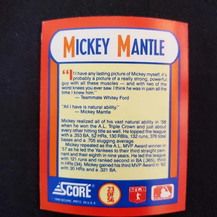 League: Major League (MLB) Autographed: No Set: 1990 Score Signed By: Not Applicable Custom Bundle: No Player/Athlete: Mickey Mantle Original/Licensed Reprint: Original Type: Sports Trading Card Sport: Baseball Language: English Manufacturer: SCORE Features: Single Season: 1990